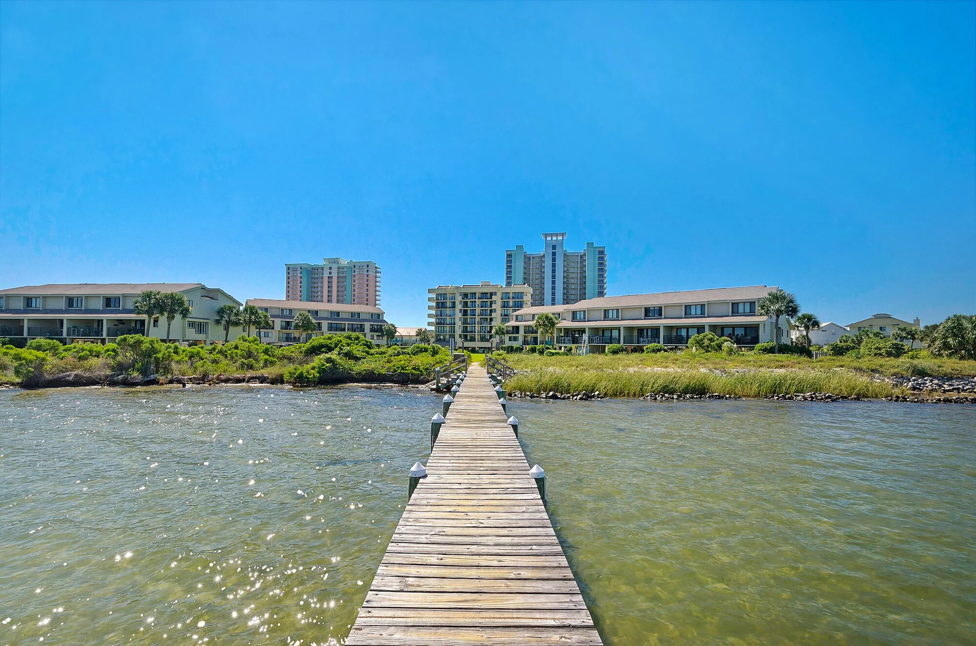 Property is in an older looking complex but unit has been nicely renovated and modernized. Super clean!! Huge pool, kayaks were fun to use on the bay, learned to play shuffleboard while we were there, and walk to the beach is not far at all. It was nice and quiet both on the bay side and the beach side. Will definitely stay here again if we are in the area.