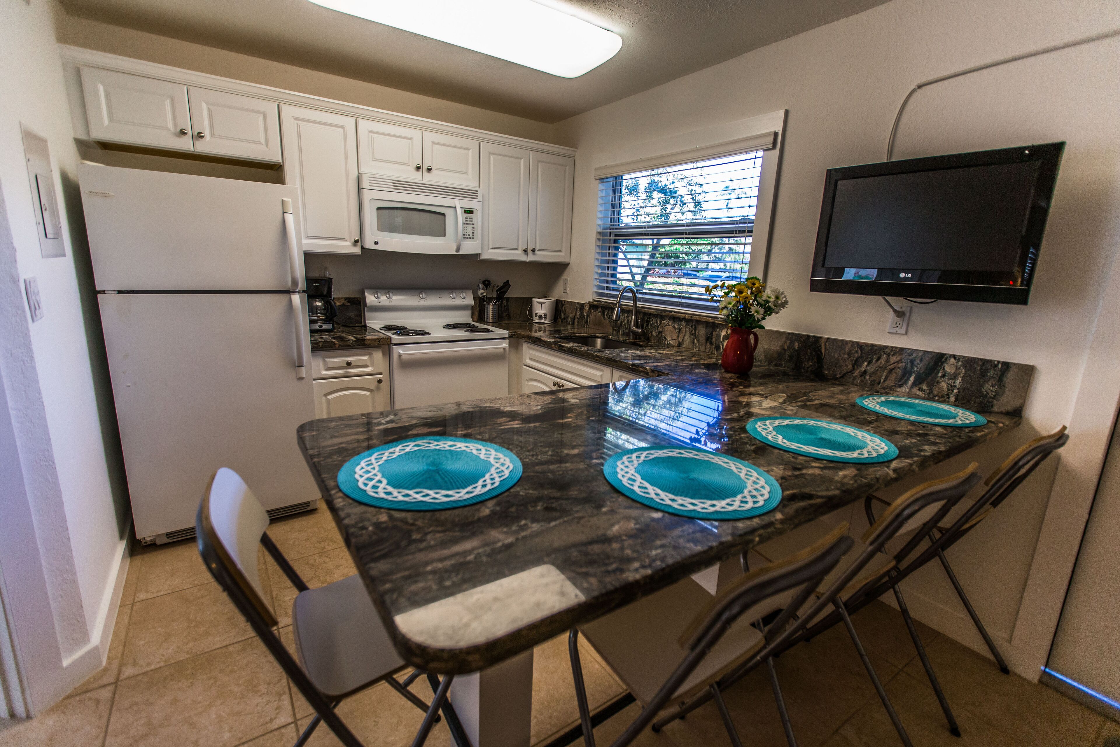 Located on Deerfield Beach's barrier Island, the studio is nestled between the ocean and intracoastal waterway. Your feet can meet the sand in under 5 minutes. The vacation rental is fully equipped and ready for your stay! We provide all linens, towels, cookware, and basics such as hair dryer, iron, blender, coffee maker. There is Wi-Fi, cable, central cooling, and free parking. The property has a heated pool* (pool is heated from December - April in Winter months), coin-operated laundry, and grill.