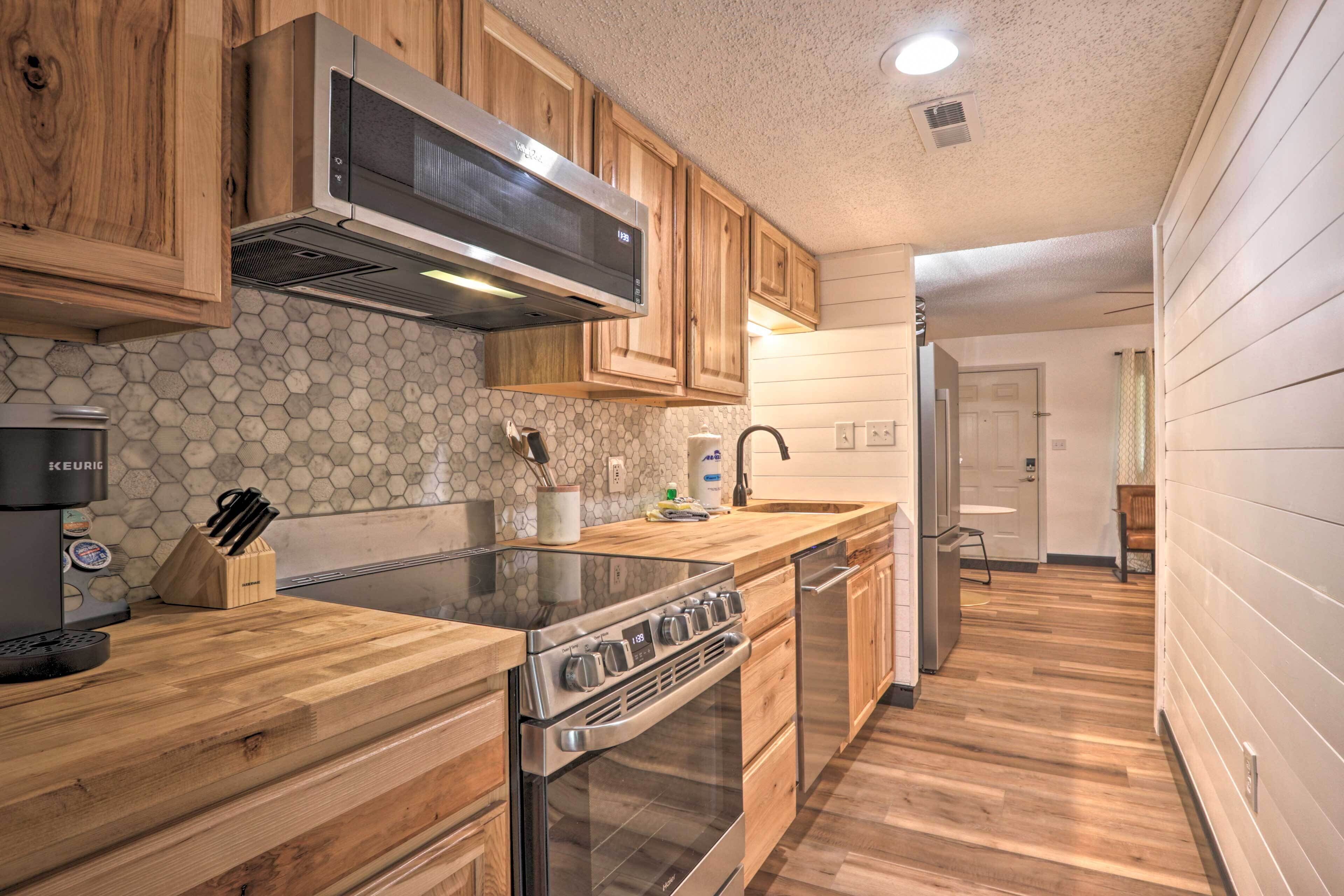 KITCHEN: Fully equipped, stainless steel appliances, dishwasher, microwave, Keurig coffee maker, toaster, blender, Crockpot, cooking basics, dishware & flatware, spices, USB outlet