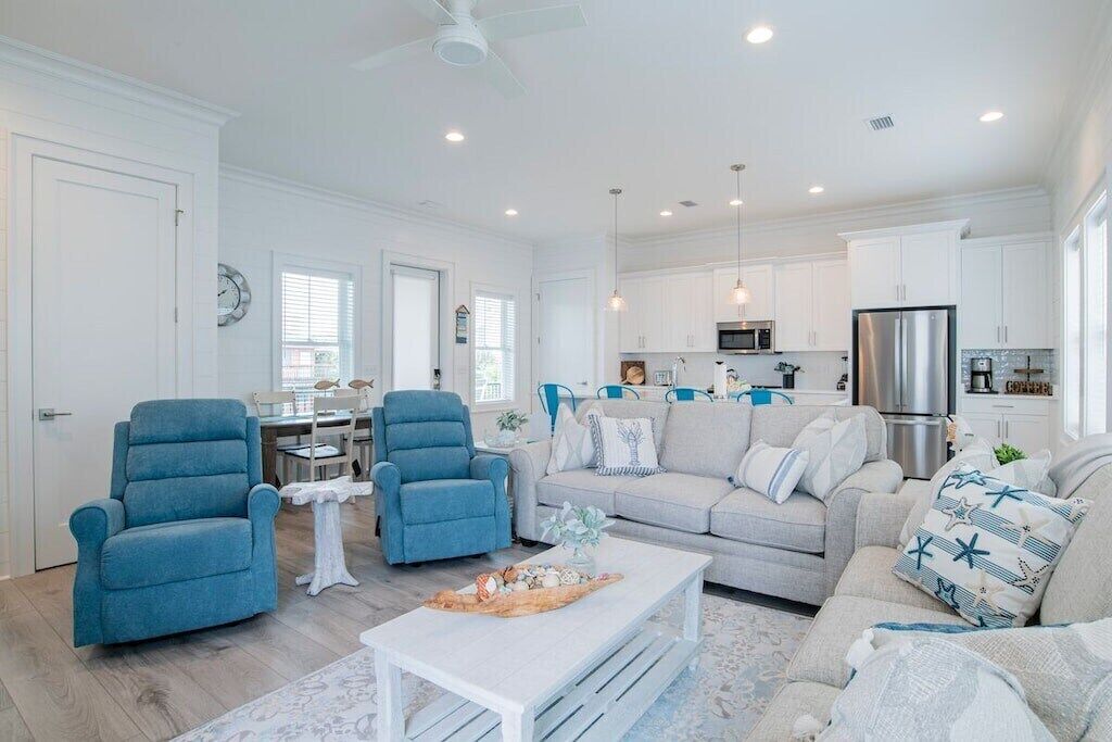 Our group consisted of 3 mothers 3 high school senior boys and 1 adult sister! The bunk room was perfect for the boys and each mom got her own room with a bathroom! We had plenty of room in the living room area for all of us. We had a bad day of weather and made it into a movie day and we could all lounge together. The house was very clean! Loved the layout! And any communication we had was promptly responded to! The boys played cornhole by the driveway area every night, the pools were very nice, the middle one blocked the wind on the days it was too windy for the beach. The location was amazing! We were walking distance to a small grocery store and there was also a restaurant and ice cream shop there, which we visited both and recommend both! The beach was a short walk, and the main strip was a few min down the road. We quickly learned a few back roads that allowed us to avoid the main intersection of town. Most of us had never been to Gulf Shores before and I will be returning! All the moms started discussing a couples trip while we were there and we will rent this property again!