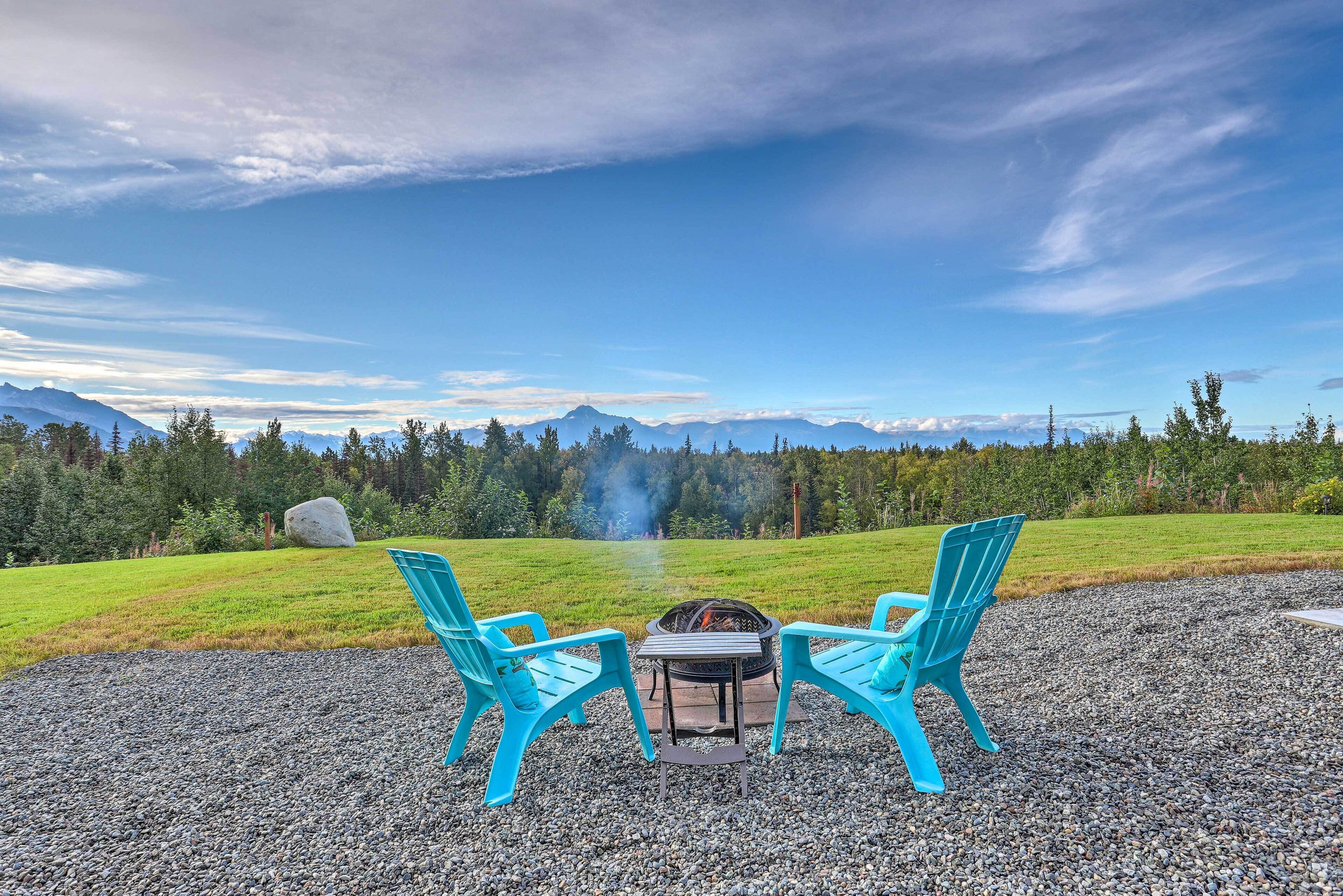 Escape to Moose Country where outdoor adventure awaits! This cozy 1-bed, 1-bath cottage sits on 20 acres overlooking the majestic Chugach Mountains of Alaska, and is just minutes to Matanuska River and Downtown Palmer. For a day trip, hike around the Matanuska Glacier, or drive to Anchorage and eat at Moose’s Tooth, one of the top pizzeria’s in the country. Look forward to ending your days at the vacation rental, cozying up by the fireplace and watching for wildlife right out your patio doors!