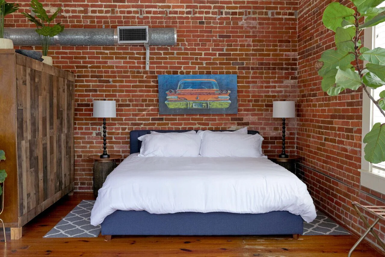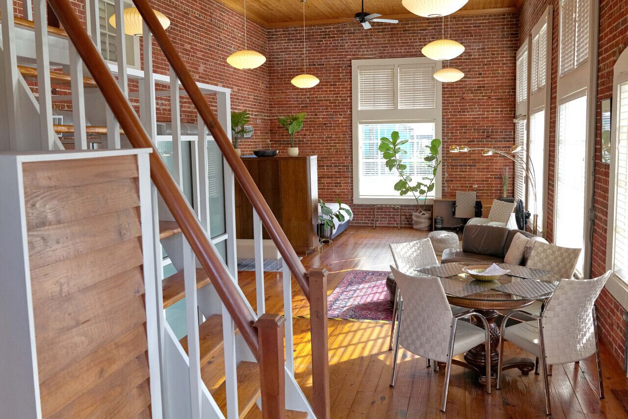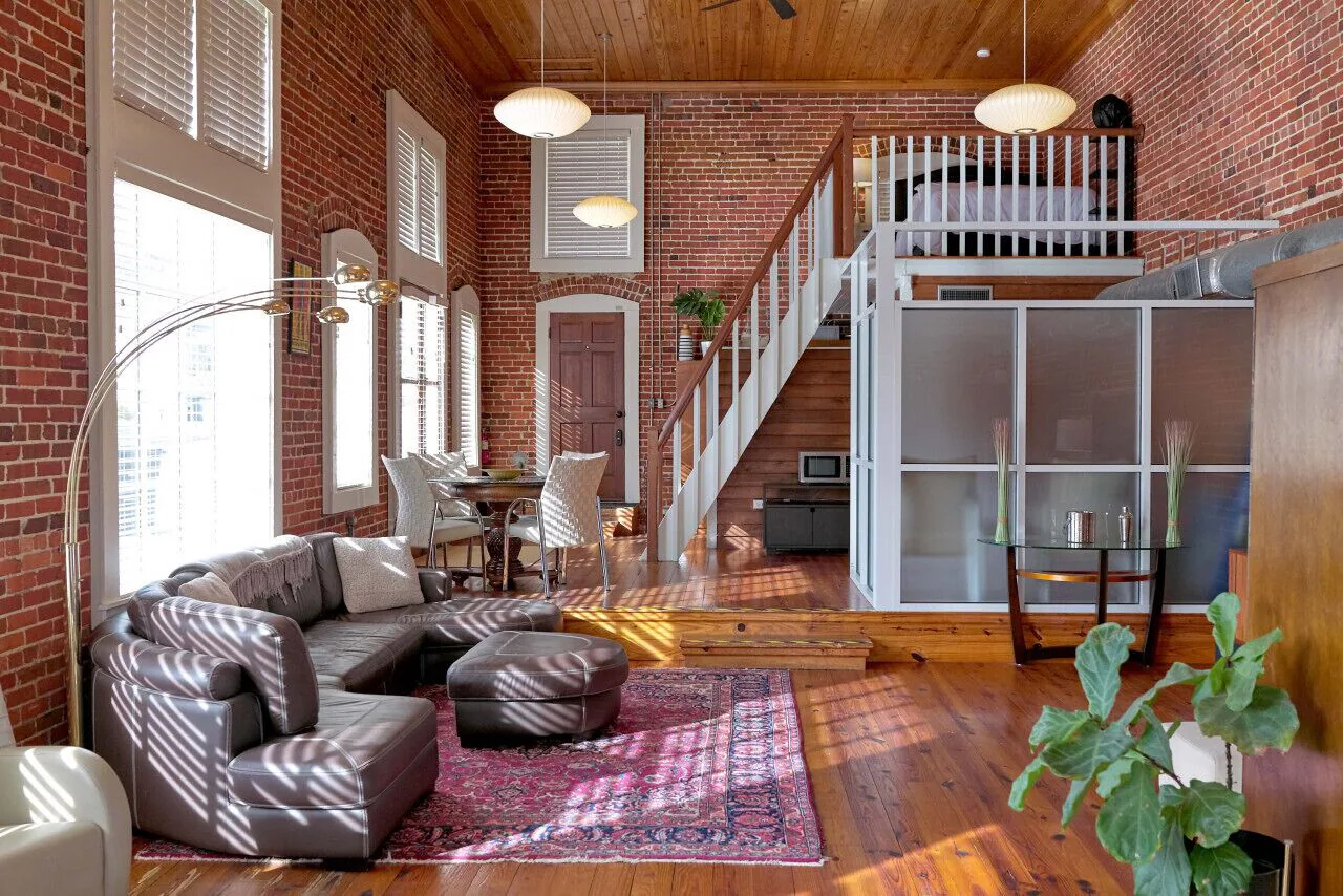 The coolest newly renovated historic building in downtown Pensacola, offered for the first time. Looking for a unique, modern experience? This spotlessly clean 2bdrm loft-style building has impressive 17ft ceilings, exposed brick, hardwood floors, bikes, new premium bedding, WIFI, 65" Smart TV, premium sound system, leather couch, full bath, mini kitchen, beach chairs/umbrella and an awesome environment where you'll be proud to stay. Walk through downtown, 15-minute drive to the beach!