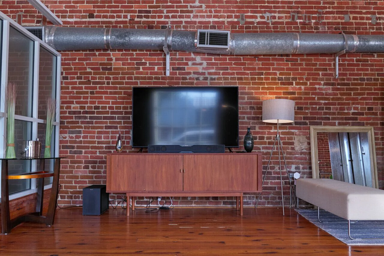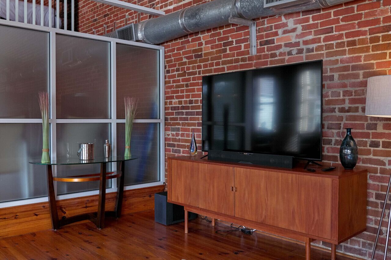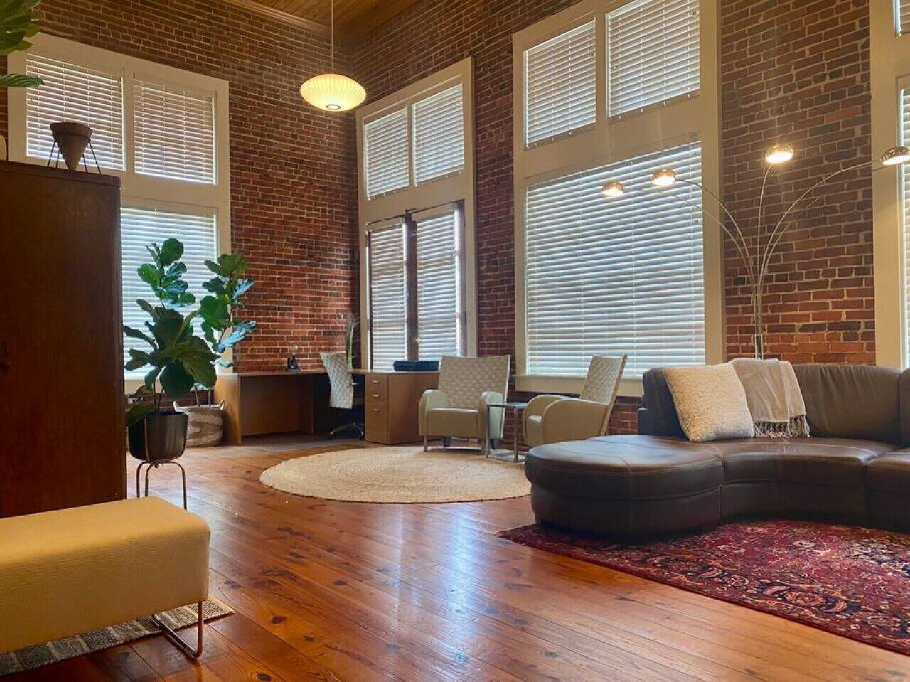 The coolest newly renovated historic building in downtown Pensacola, offered for the first time. Looking for a unique, modern experience? This spotlessly clean 2bdrm loft-style building has impressive 17ft ceilings, exposed brick, hardwood floors, bikes, new premium bedding, WIFI, 65" Smart TV, premium sound system, leather couch, full bath, mini kitchen, beach chairs/umbrella and an awesome environment where you'll be proud to stay. Walk through downtown, 15-minute drive to the beach!