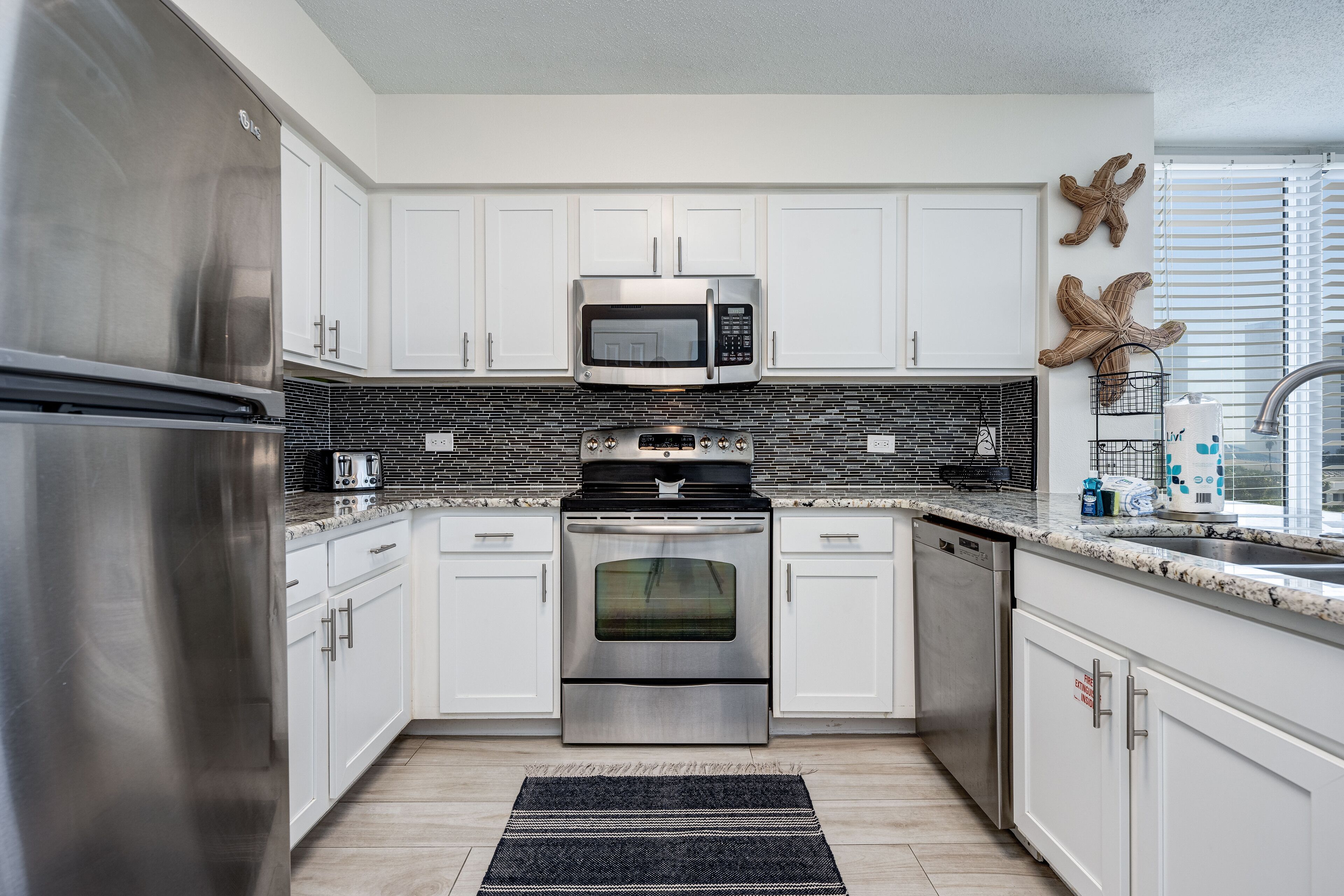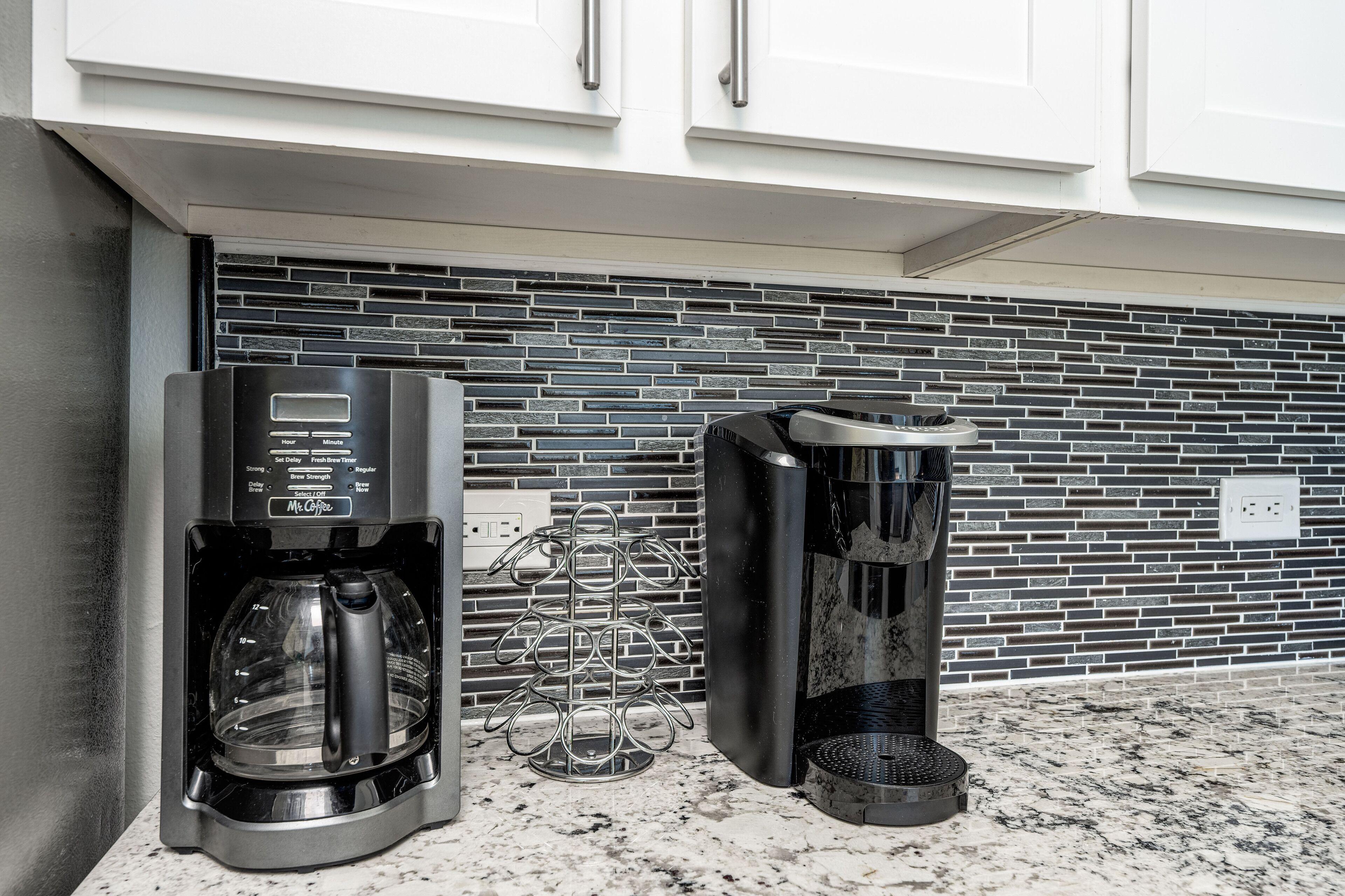 The kitchen is equipped with updated stainless steel appliances and granite countertops. You will have everything you need to prepare your caught fish of the day in this kitchen, including a Keurig and a regular coffee maker for the morning crowd.
