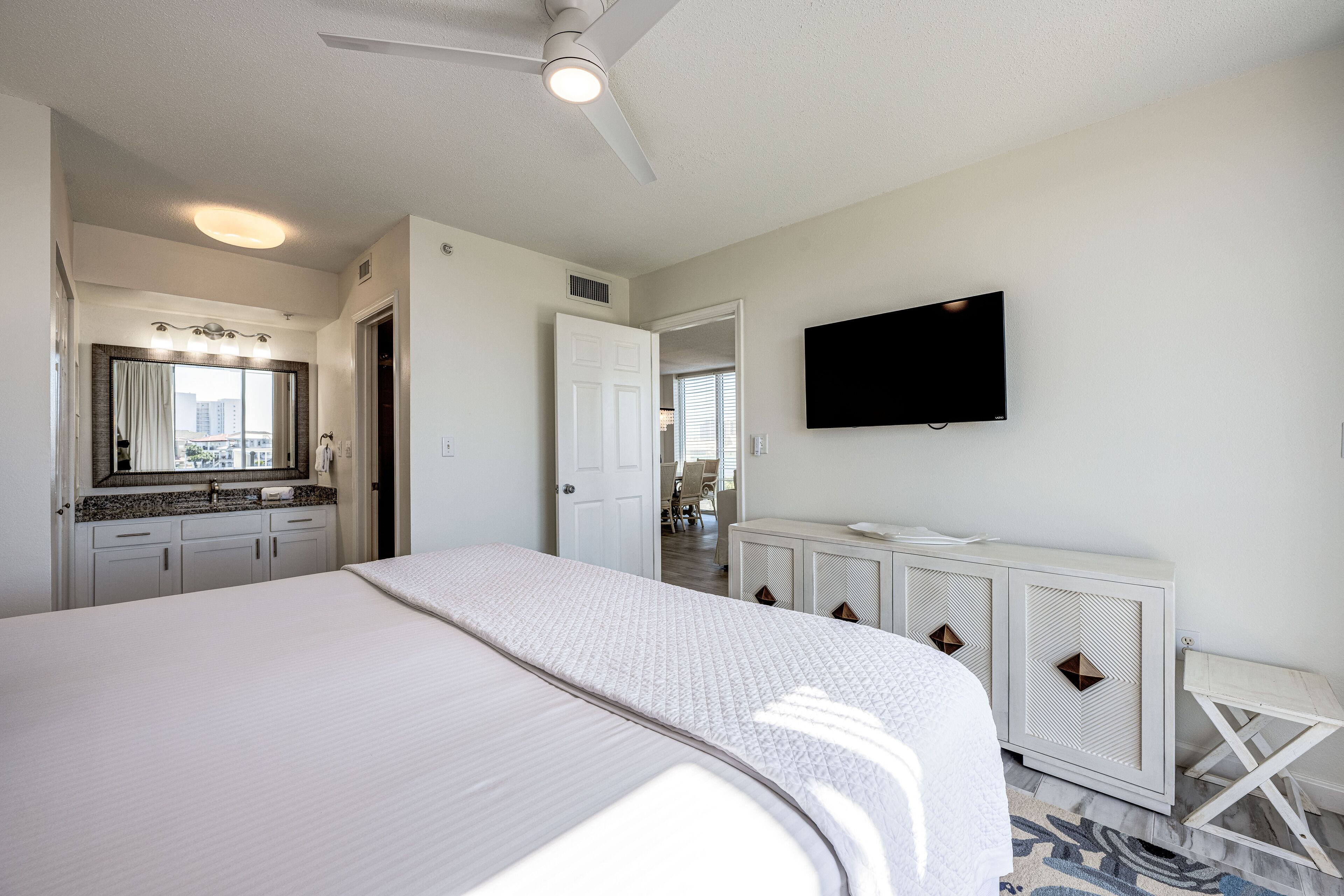 Upon entering Terrace 307 is the bedroom/suite with a wet bar and refrigerator and a microwave, a private balcony over looking the fountain and lake and great Gulf views! This suite has a connecting private bath.