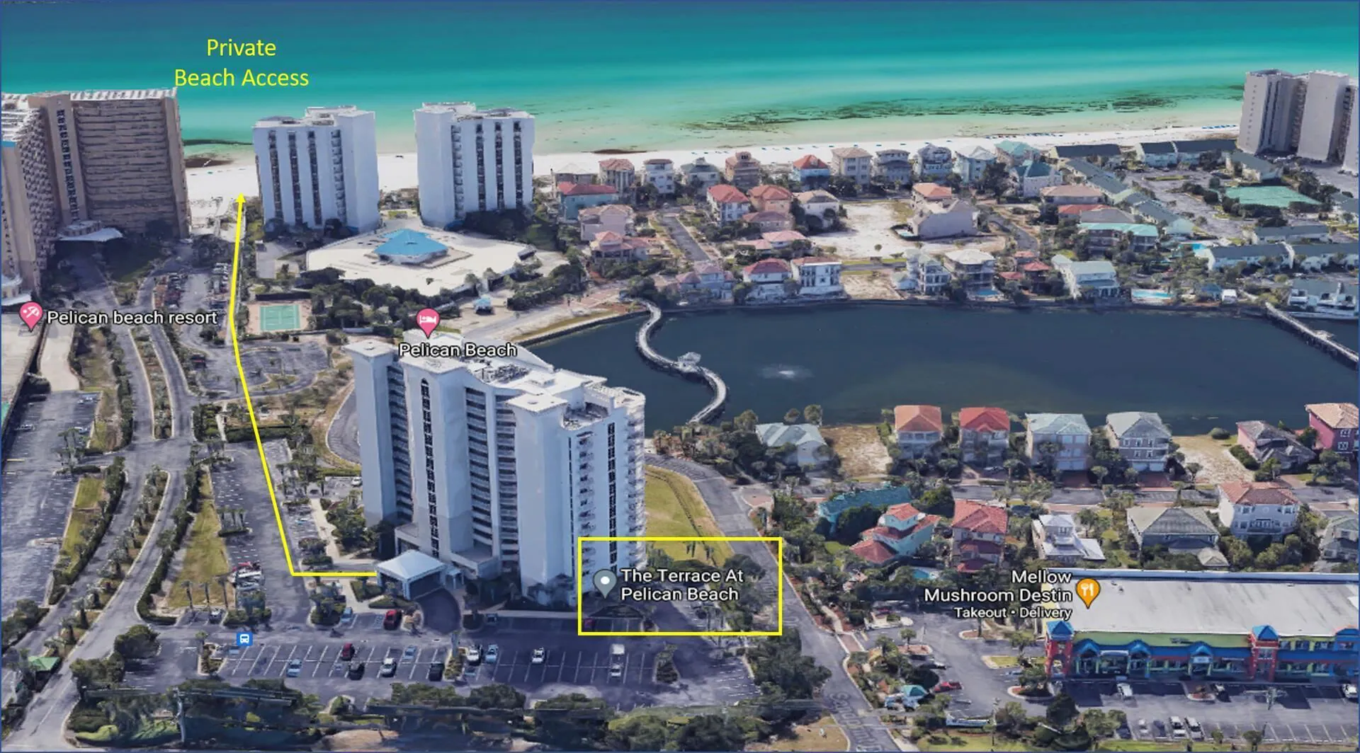 The Terrace at Pelican Beach Resort is a beautifully designed vacation complex set within a 15 acre tropical oasis located in the heart of Destin. This location puts you within minutes and even walking distance from many activities, restaurants & shops. Great for families and the young at heart.