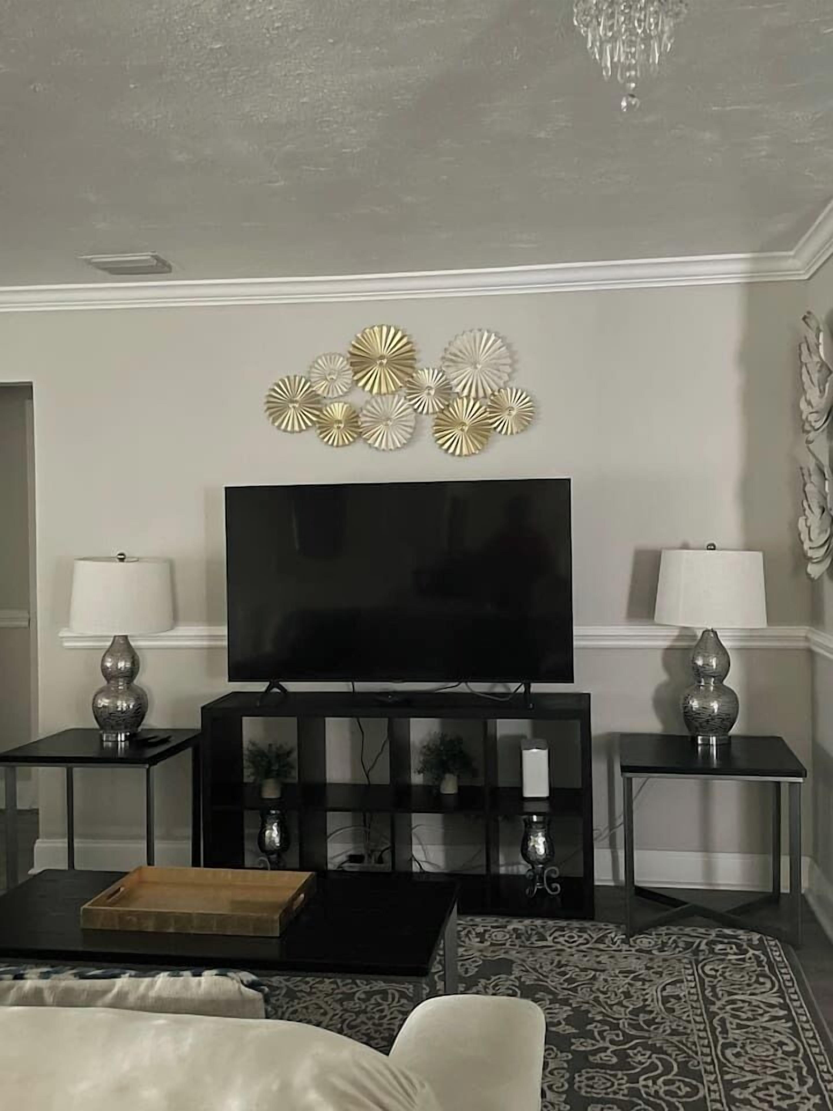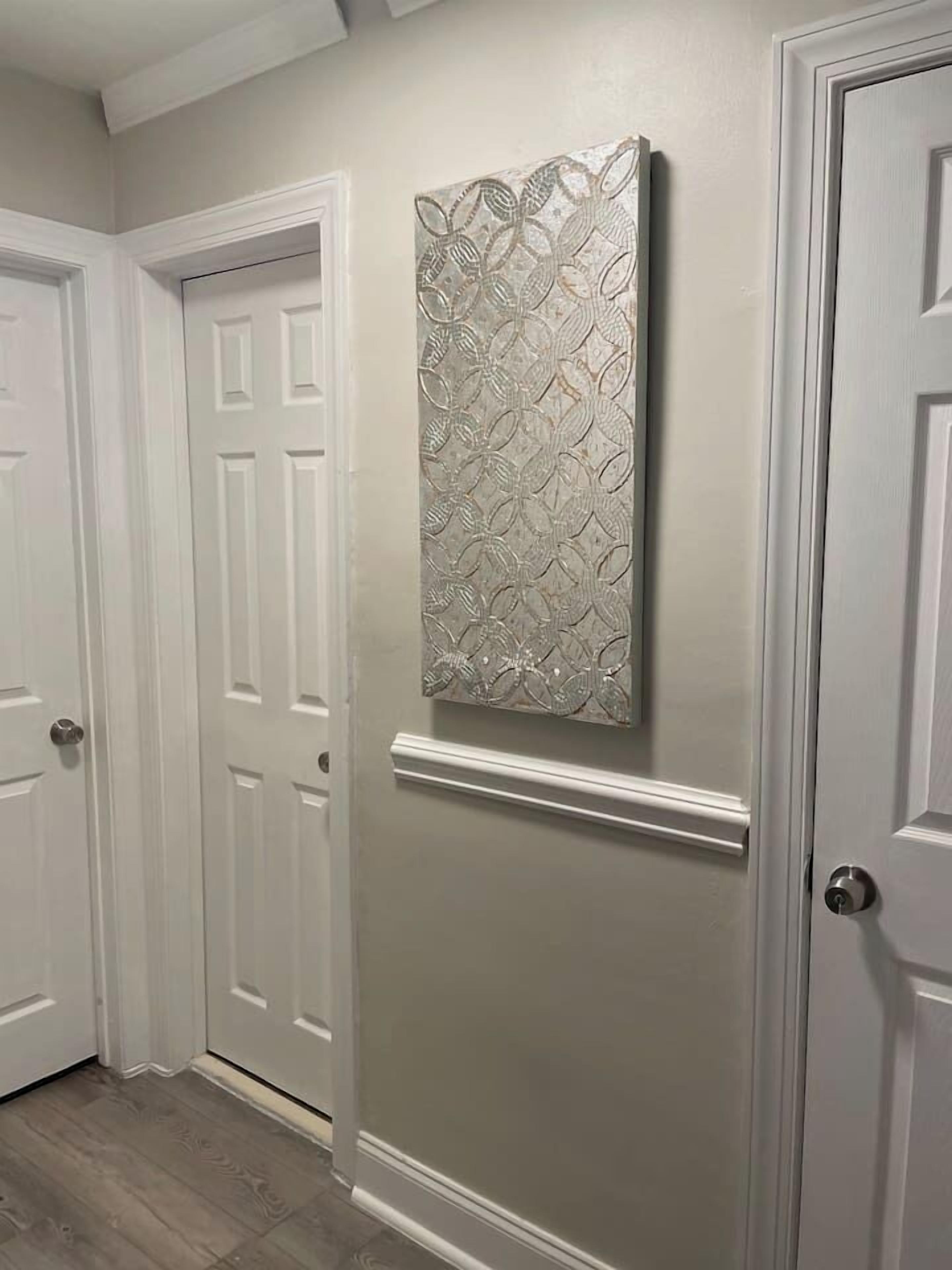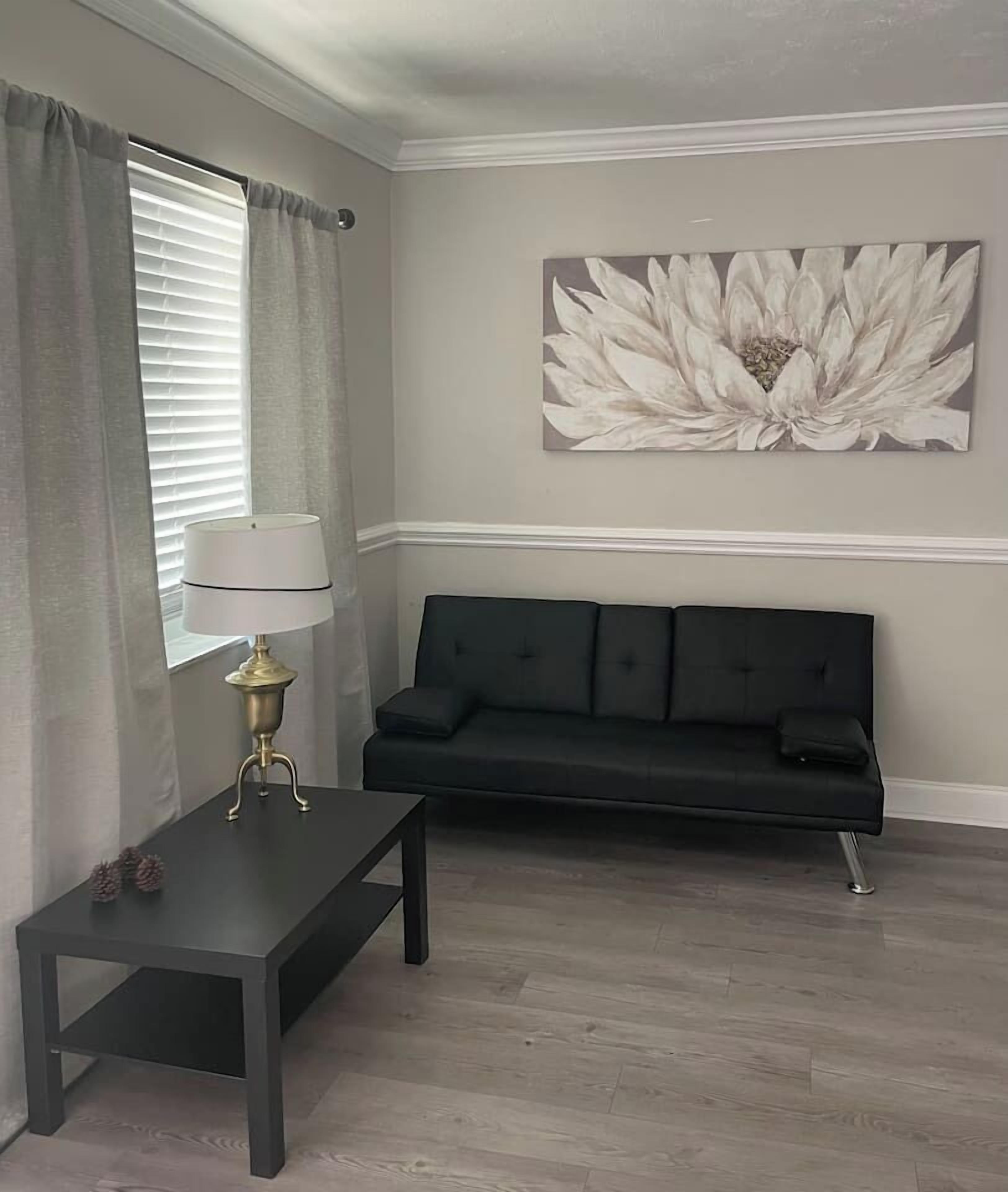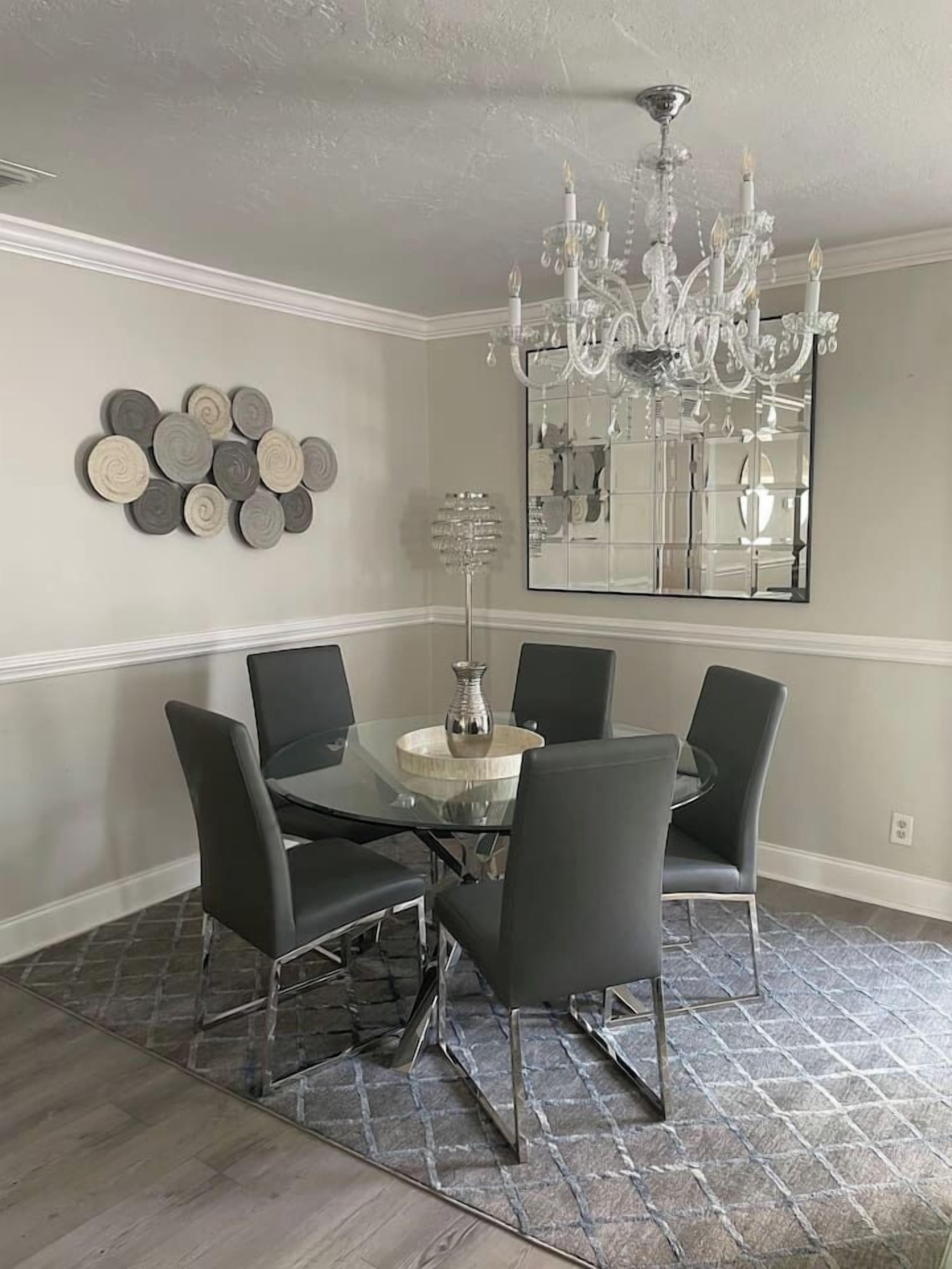 The layout: Front door opens up to a formal foyer with shoe storage and seating. Following into a living room with 3 couches, coffee table, and smart TV. Eating space for at least 7 people with formal dining area + kitchen island. Chef’s Kitchen is updated and fully stocked to make you feel at home. An independent master suite (Walk-in closet & en-suite bathroom). The other two bedrooms share a hallway with full bathroom. In house laundry. Fully updated & modern bathrooms throughout. The 3rd room at front of home features a kitchenette area with optional independent entrance that leads to the driveway.