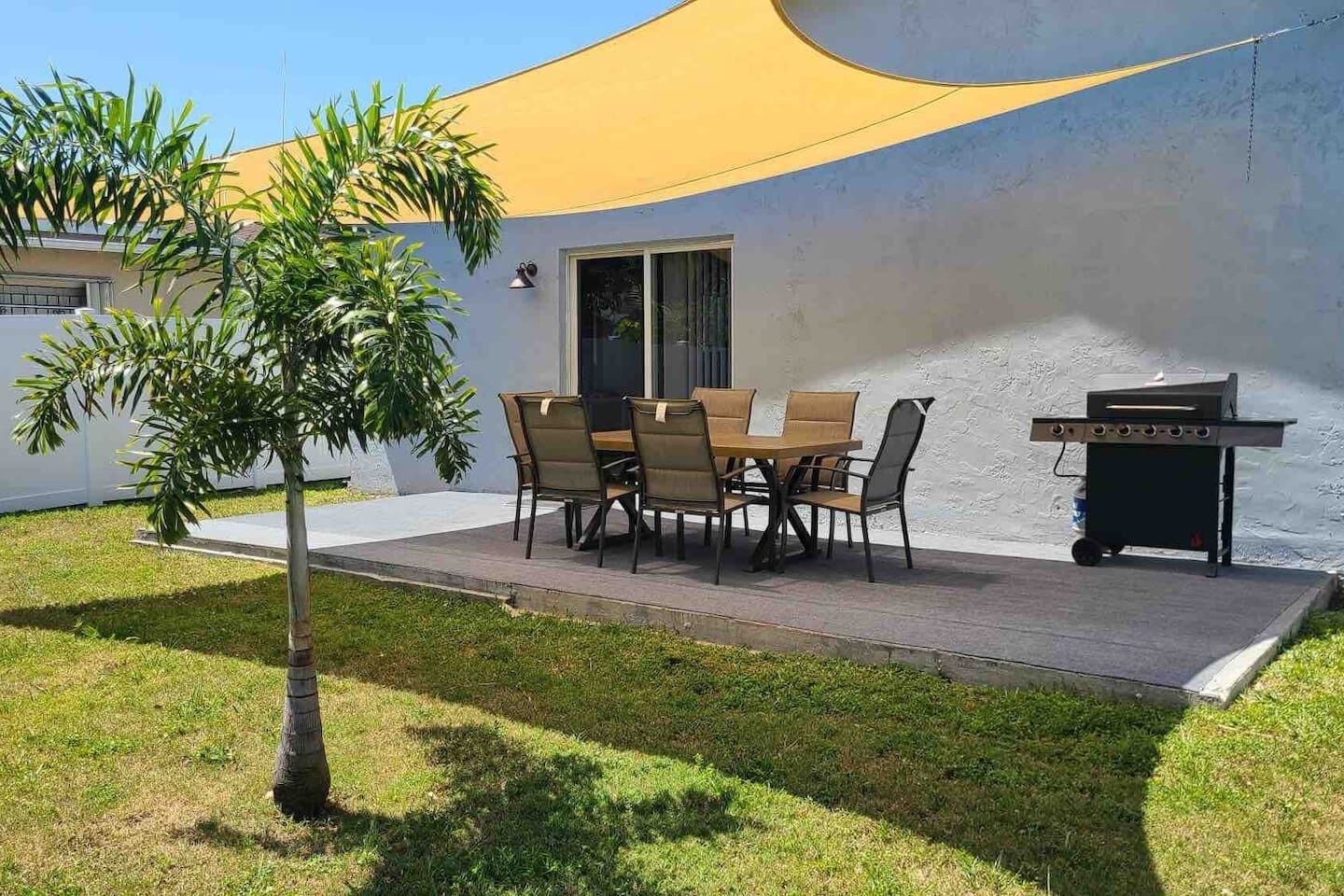 Central location- Lovely and Inviting open layout home. Features huge backyard with Impressive landscaping, Deck w/table & 6 chairs, Sunshade, and BBQ grill. Very good home for large families and/or entertainment. Visit some of the best beaches in Florida!