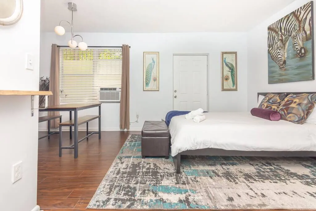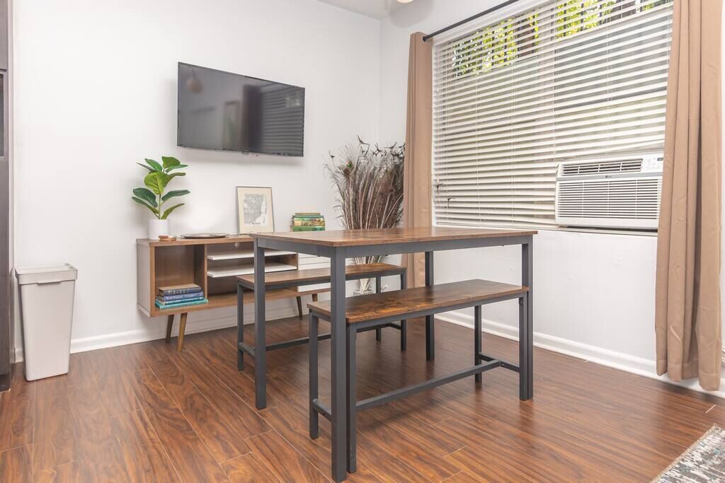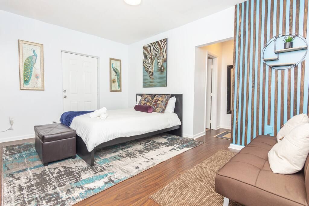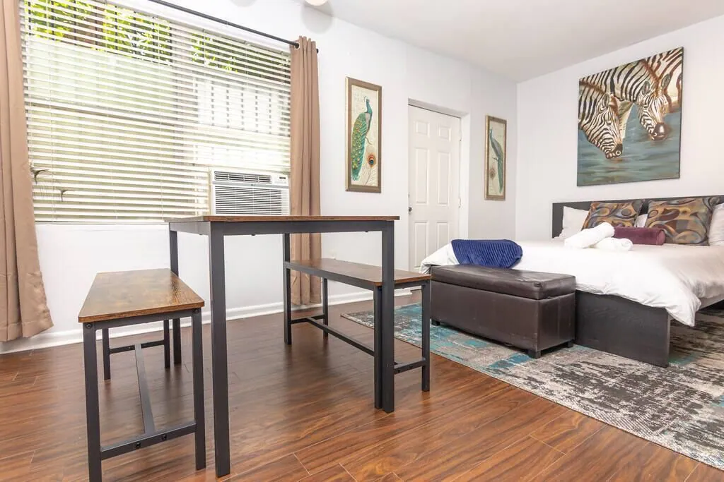 Enjoy a stylish experience at this centrally-located studio . We are located minutes from the beach, Wynwood, Design District, Midtown and Downtown. Rockmoorvilla studio 3 has all the amenities you need to feel right at home. We have high speed wifi, gated parking a court yard, and charming decor. You will feel right at home with us. This is a great place if you are thinking of short trips or extended stay. Our full kitchen makes living easy. We are also located to many awesome foodie spots!