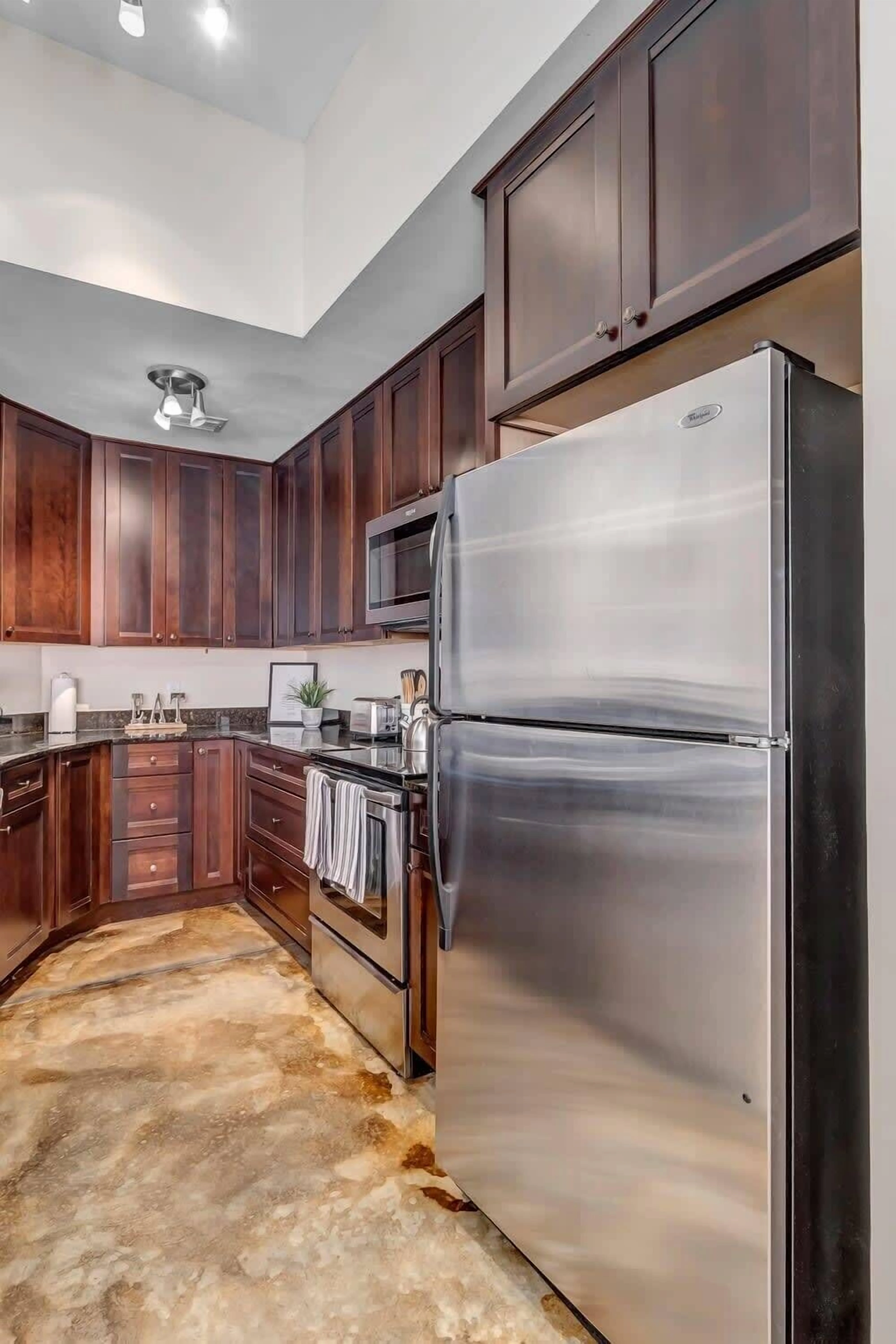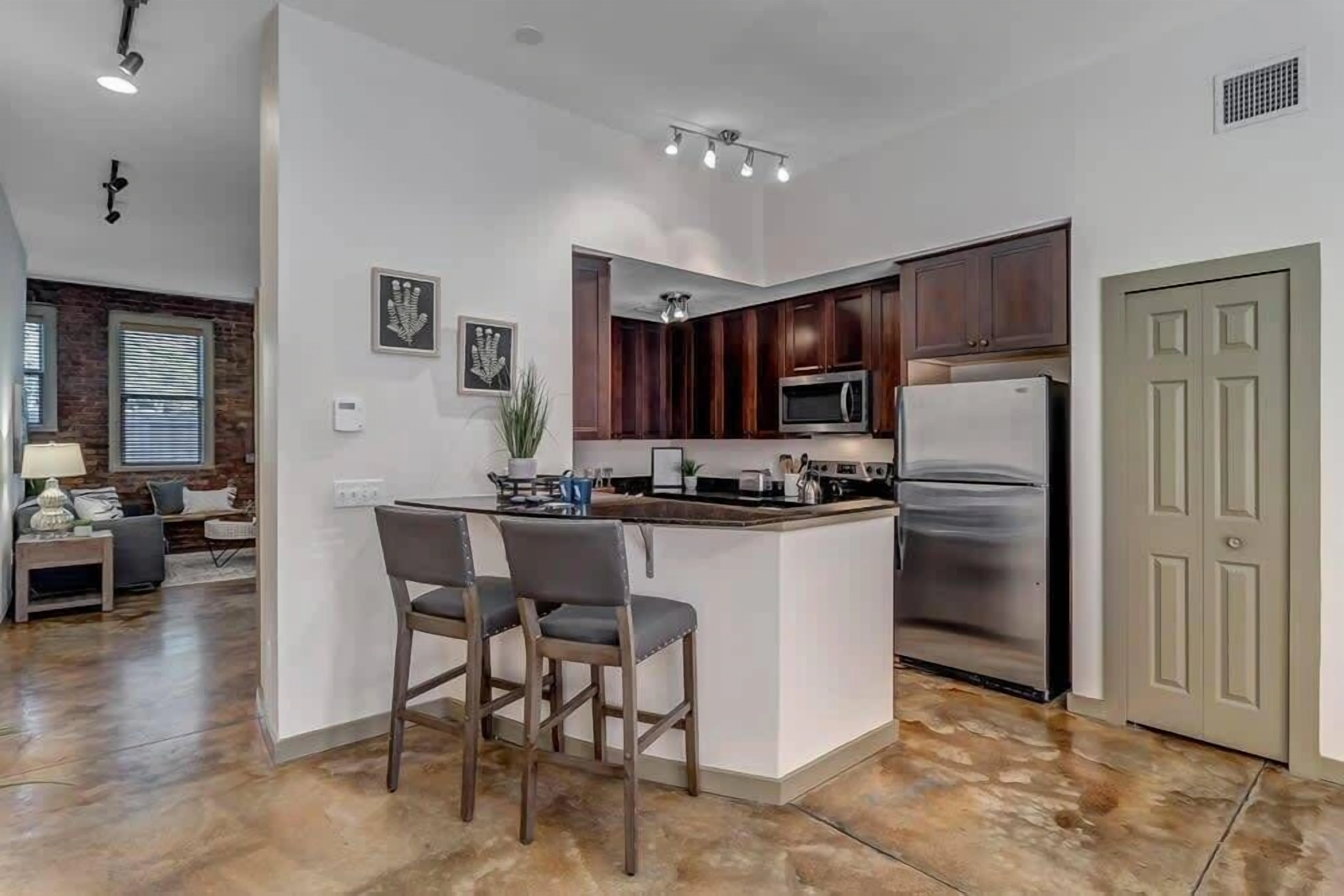 This unit boasts polished concrete floors and a recent top to bottom renovation. It is the perfect home-away-from-home!