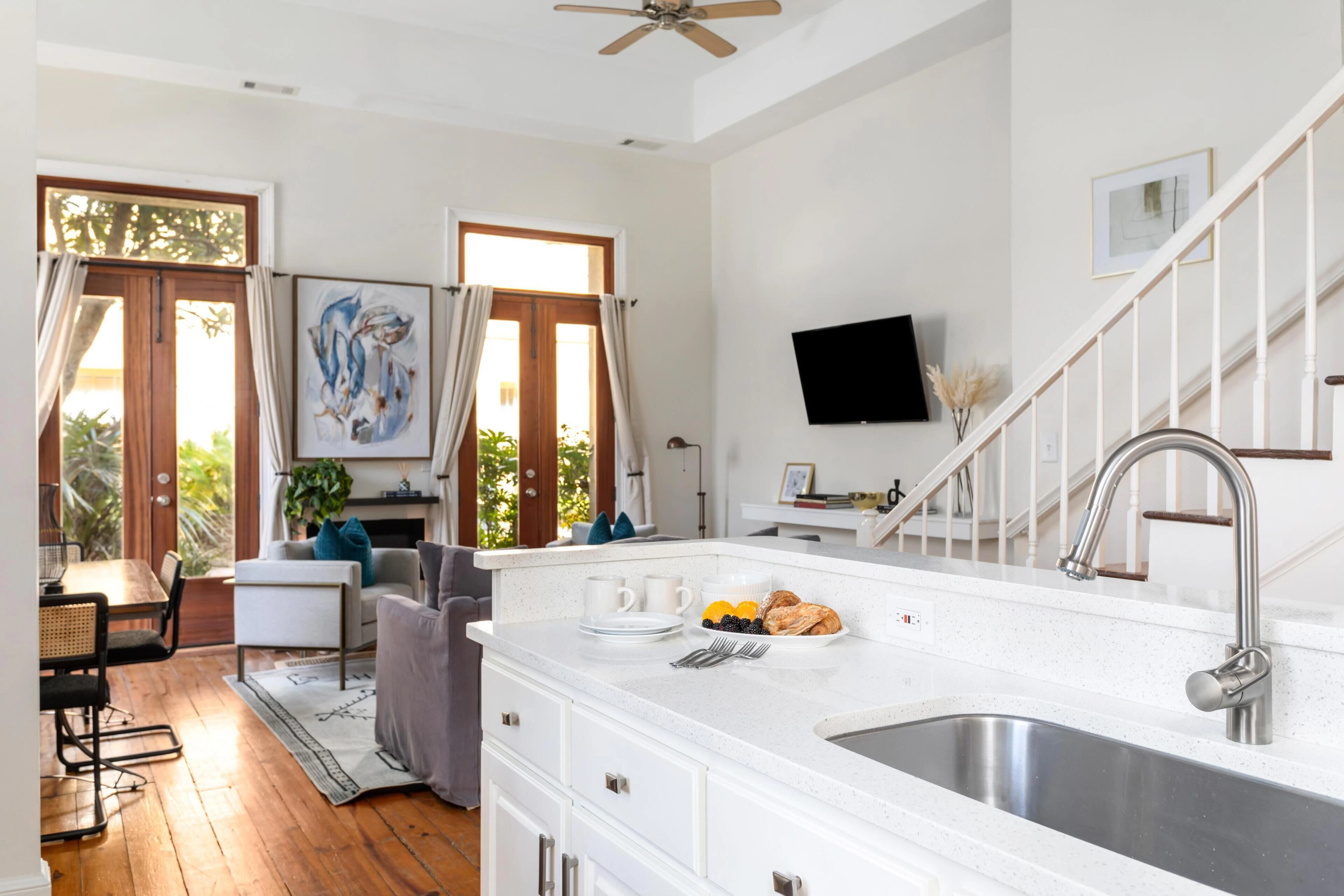 This exquisite gem of a neighborhood is tucked between a private retreat along Lodge Alley. Maison Des Fleurs features soaring ceilings, heart pine floors and courtyard perfect for enjoying a morning cup of coffee or evening glass of wine. This luxurious, updated home offers every amenity you'll need including full kitchen, washer/dryer, and complimentary wifi. Walk to iconic landmarks like the Customs House, Charleston City Market, Rainbow Row or the Battery in just a few minutes. If this is how you dream of a historic Charleston vacation, then Maison Des Fleurs is destined to become your favorite downtown getaway. One free parking pass is provided for a nearby parking garage. Pet friendly!