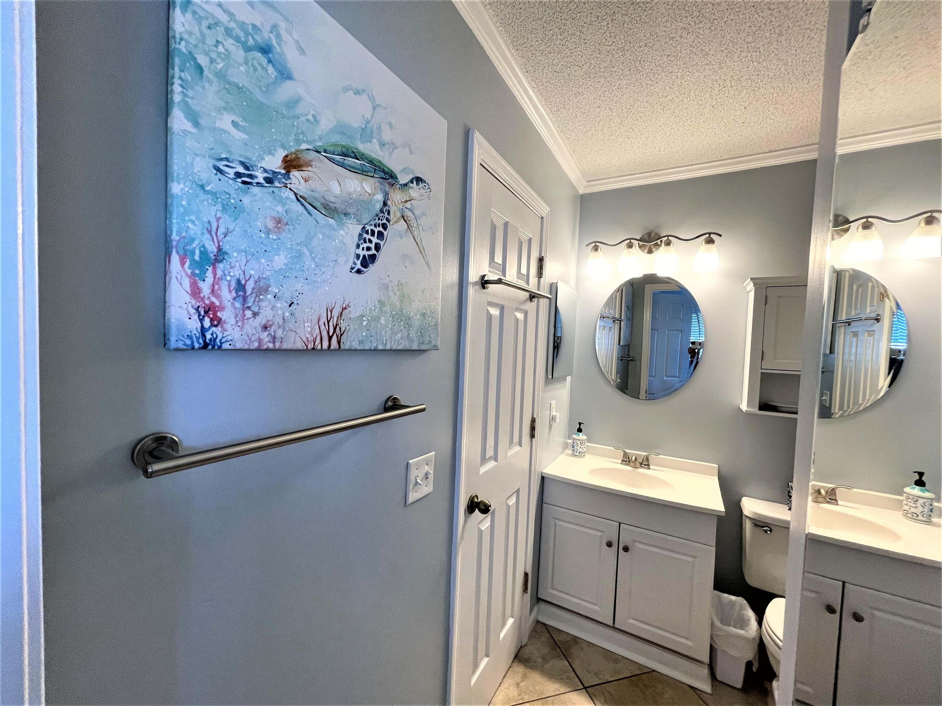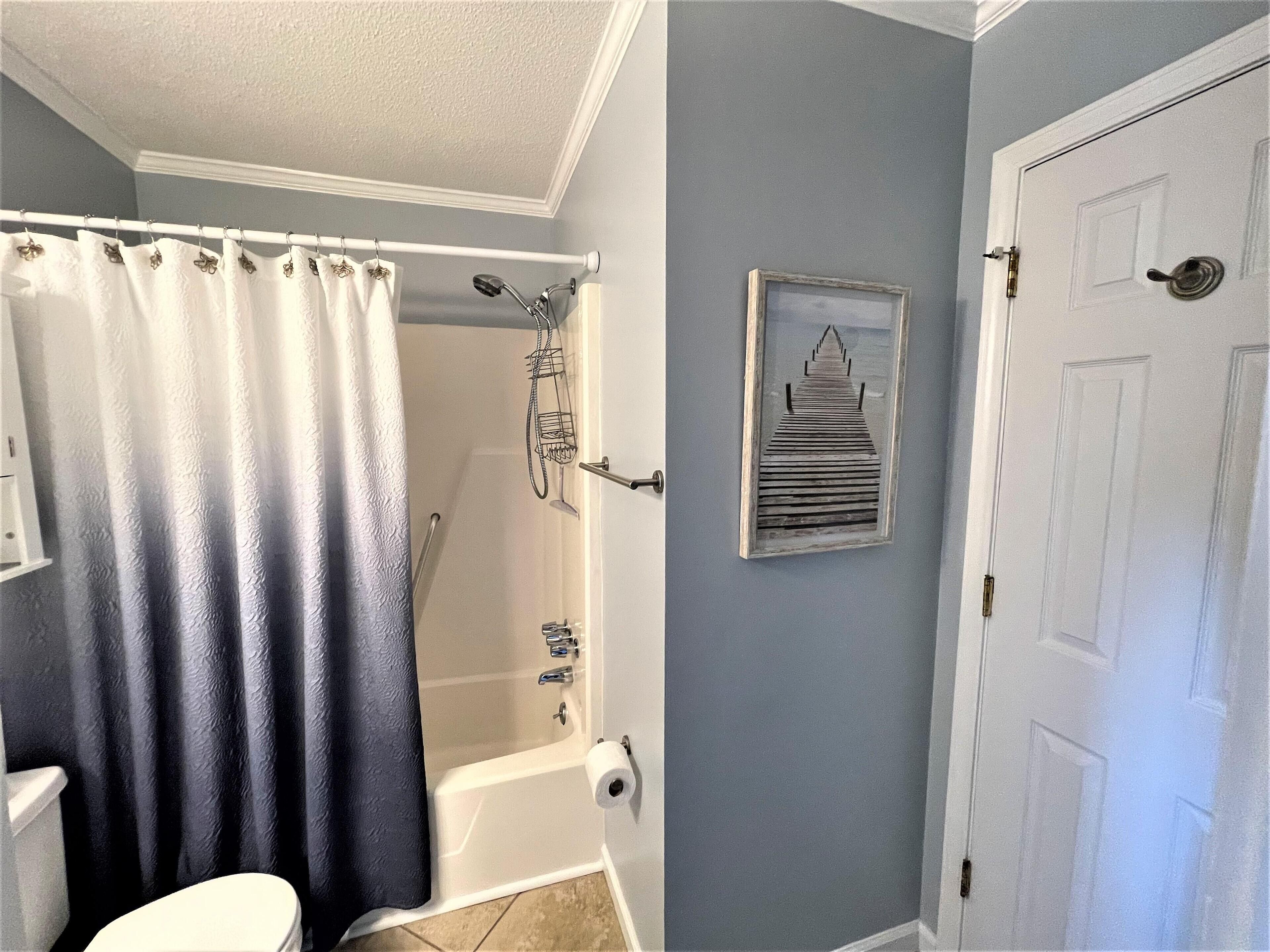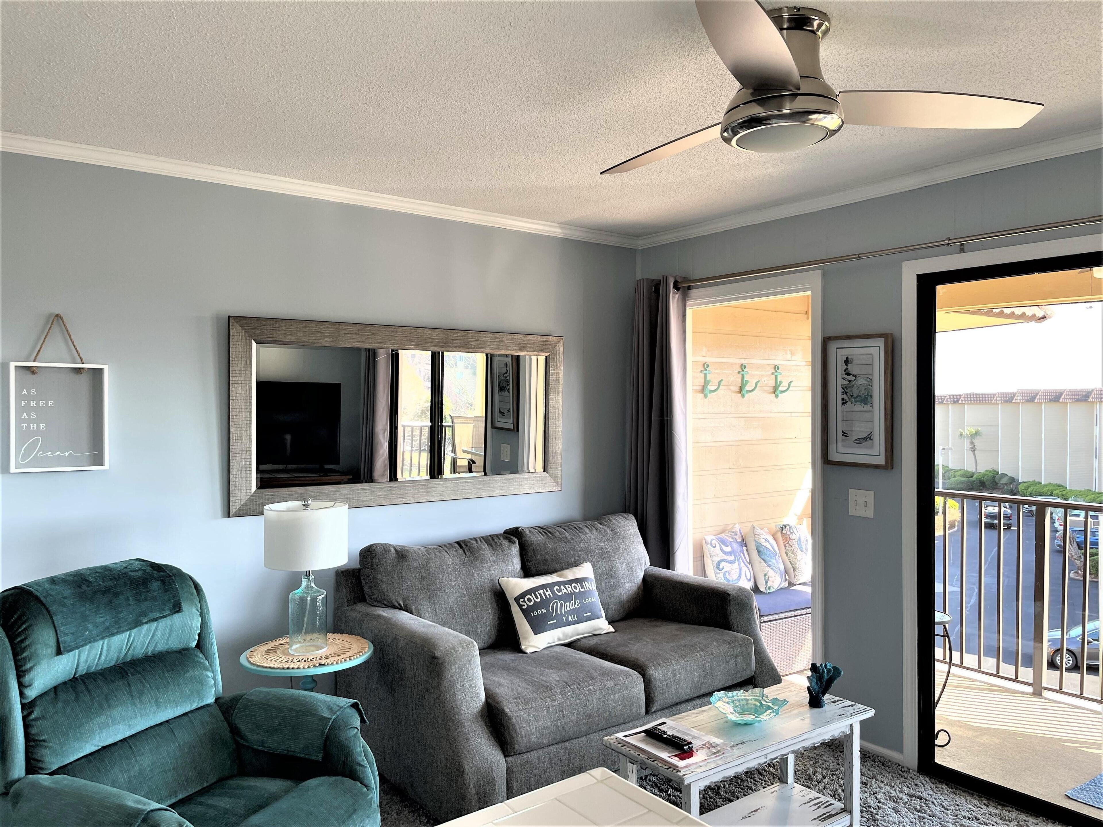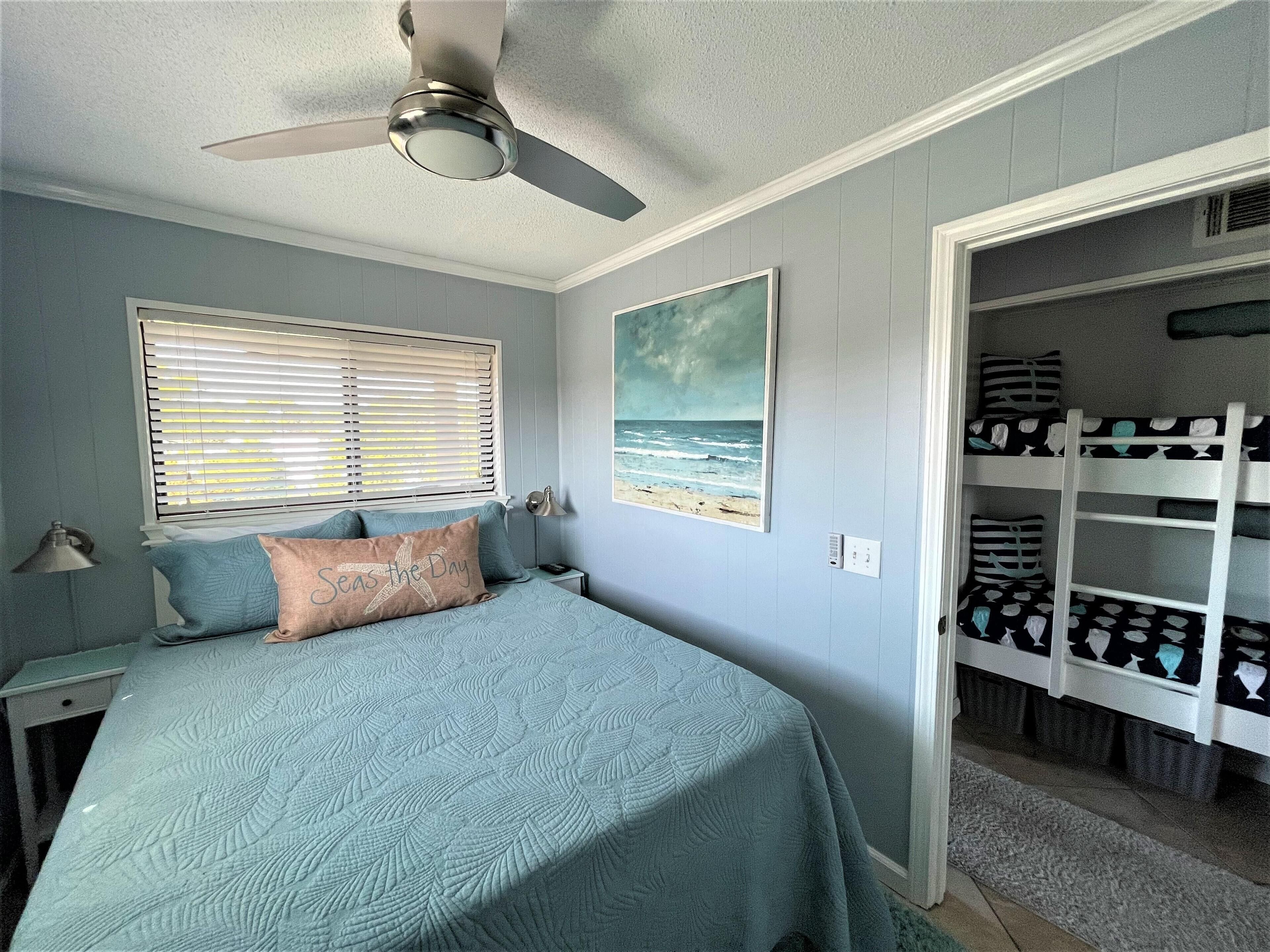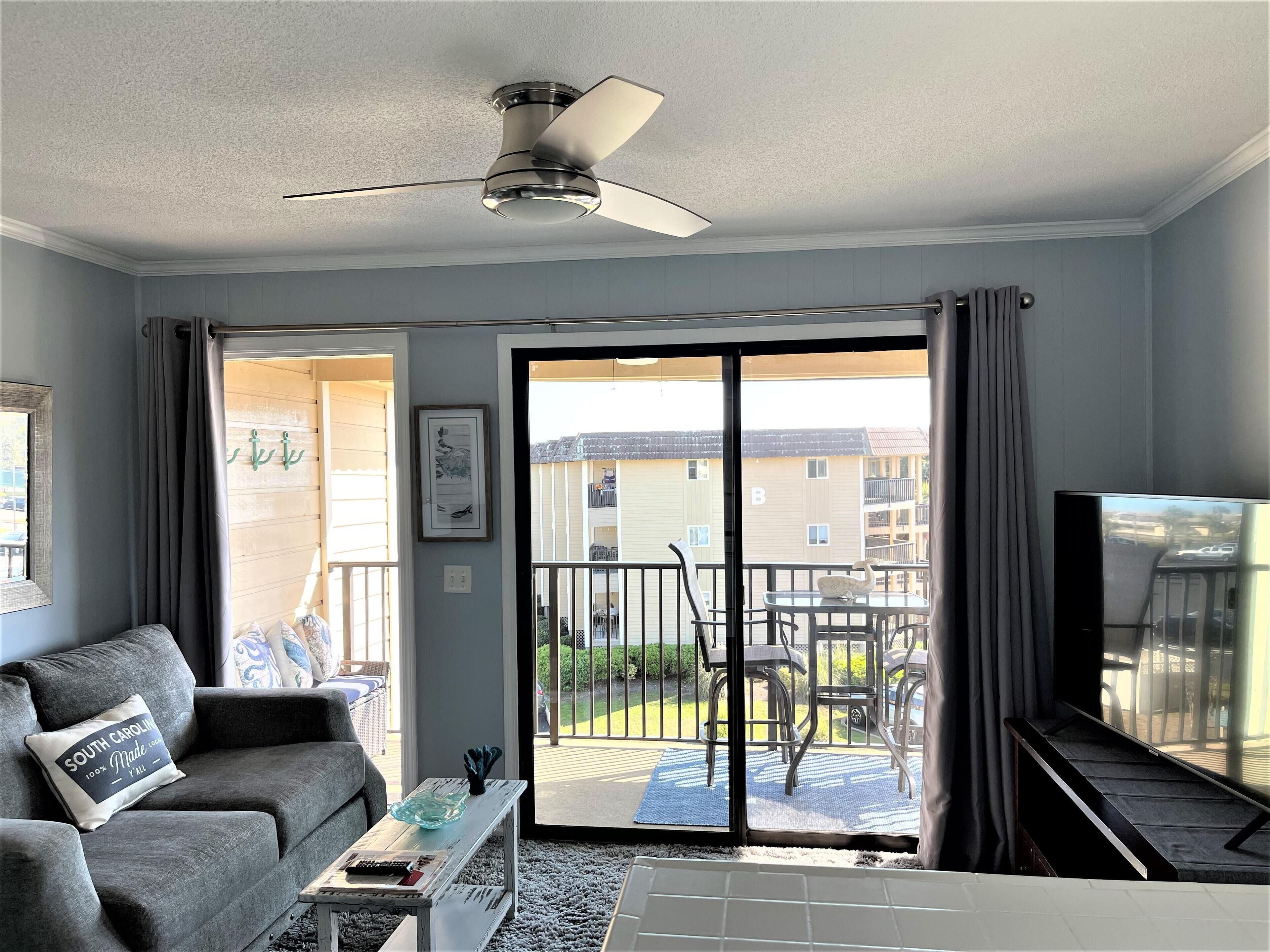 Private Entrance and close to the Elevator is the location for this Top Floor Villa with great views of the ocean from the balcony. There is a private bedroom with a Queen Bed and a built-in bunk bed in common area of bedroom which is perfect for children and a sleeper sofa. Quick 1 minute walk to beach and largest beach pool on Hilton Head. The elevator is close by for easy access. The villa is nice and clean with tile throughout. . Updated kitchen with white cabinets, island bar, stove, microwave, full size refrigerator and dishwasher, This vacation villa has everything you would expect to get in a vacation rental with a fully stocked kitchen and bed & bath linens included. Ride bikes on the beach or on the miles of bike trails around Hilton Head Island.