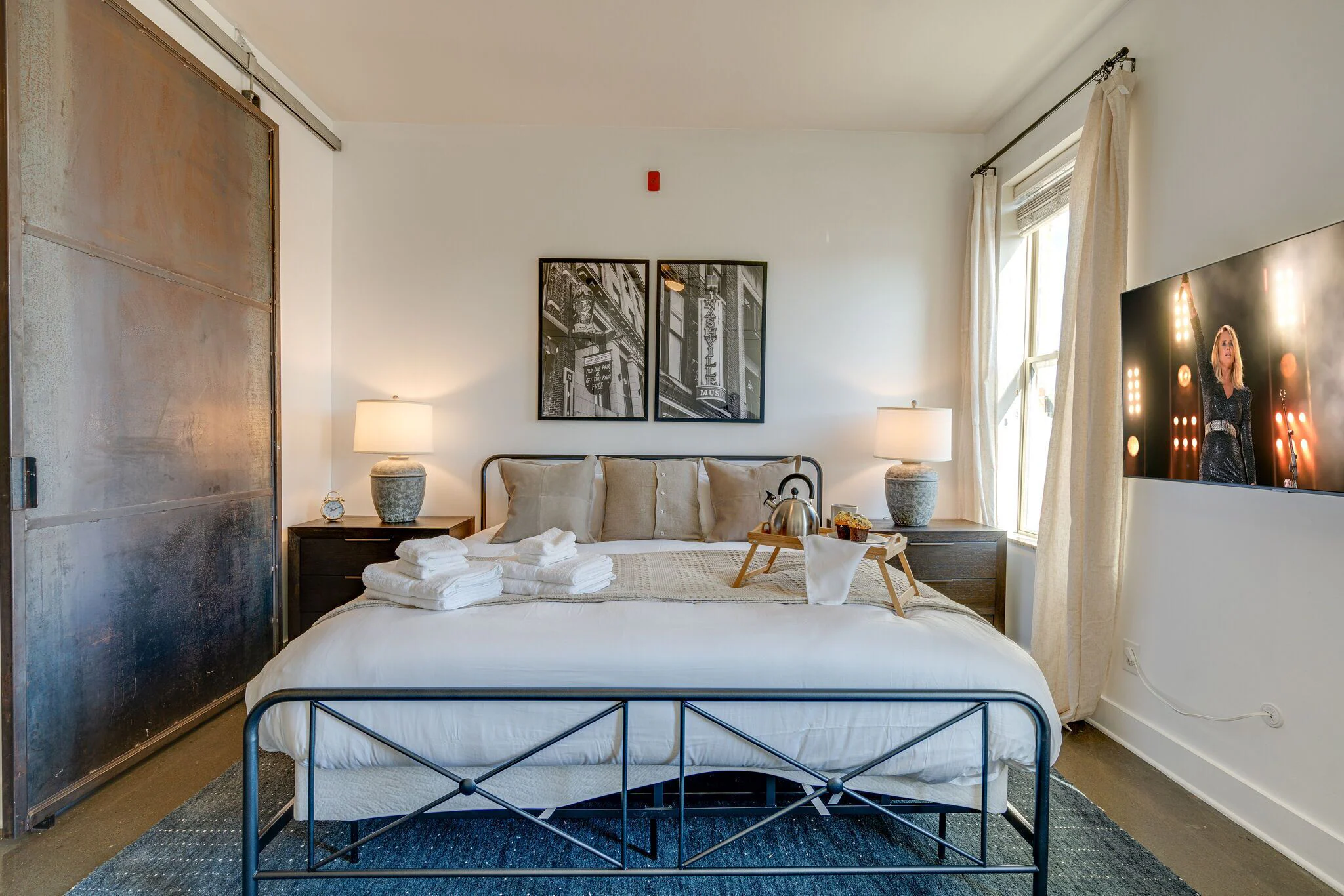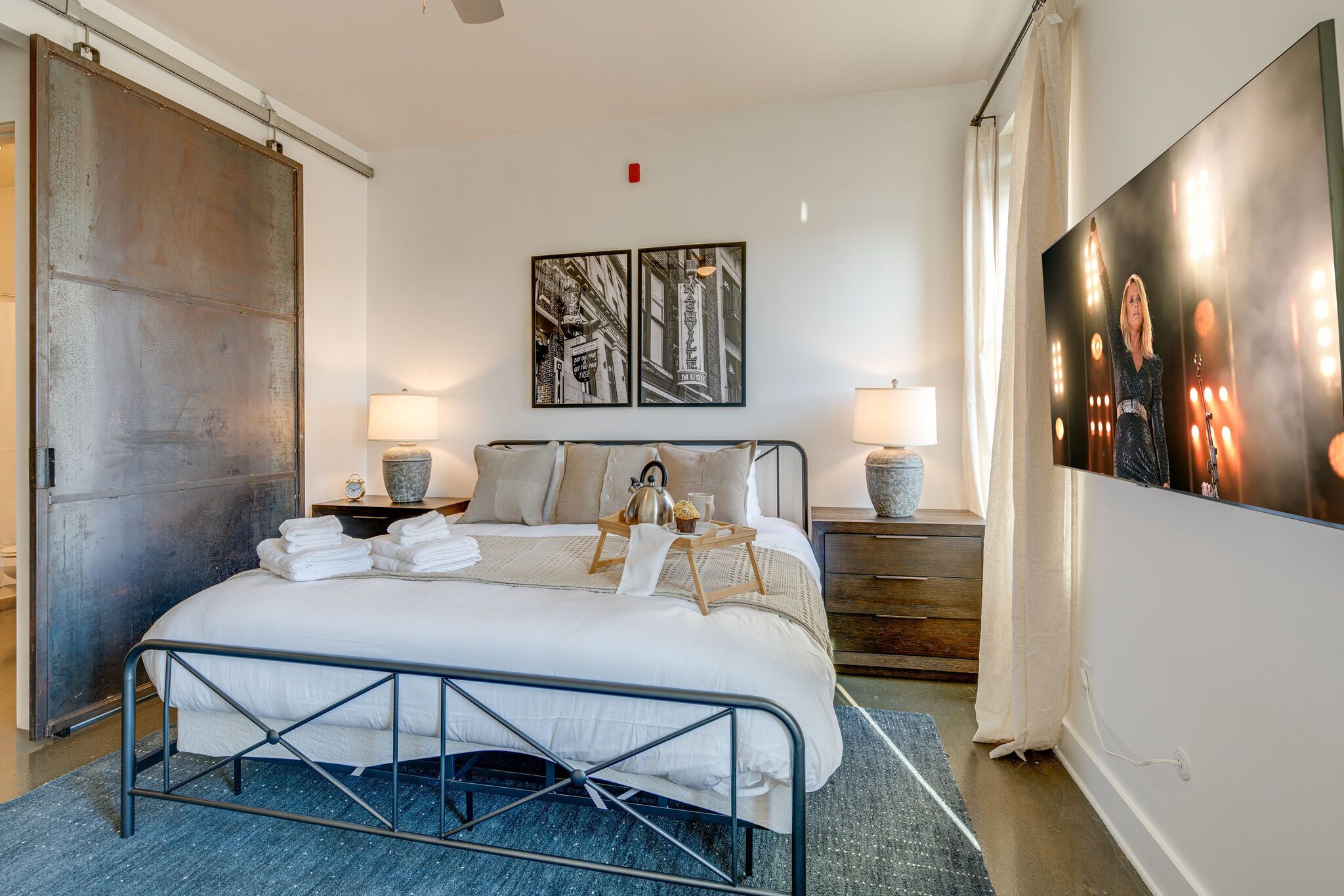 Holiday in Nashville This loft was amazing! Great location in regards to restaurants and nearby family without getting on interstate. Very clean, safe and well decorated. Neighbors were loud throughout the night on night 1, but ended up not being an issue after that. To be expected during a holiday. Parking spaces were tight but available as listed. Our family consists of 2 adults and 2 young kids. Kids were well situated on the sofa bed setup that’s a detached base with comfortable mattress, with their own tv. 2 adults have privacy behind large sliding doors in the bedroom with tv. Would’ve liked to have more than 2 sets of towels for a 4 person accommodation. Luckily, we travelled with water park towels that the kids used. Washer and dryer were clutch, along with plenty of provided toiletries, dish soap, laundry pods, bags, etc. Already planning our next visit at this location.