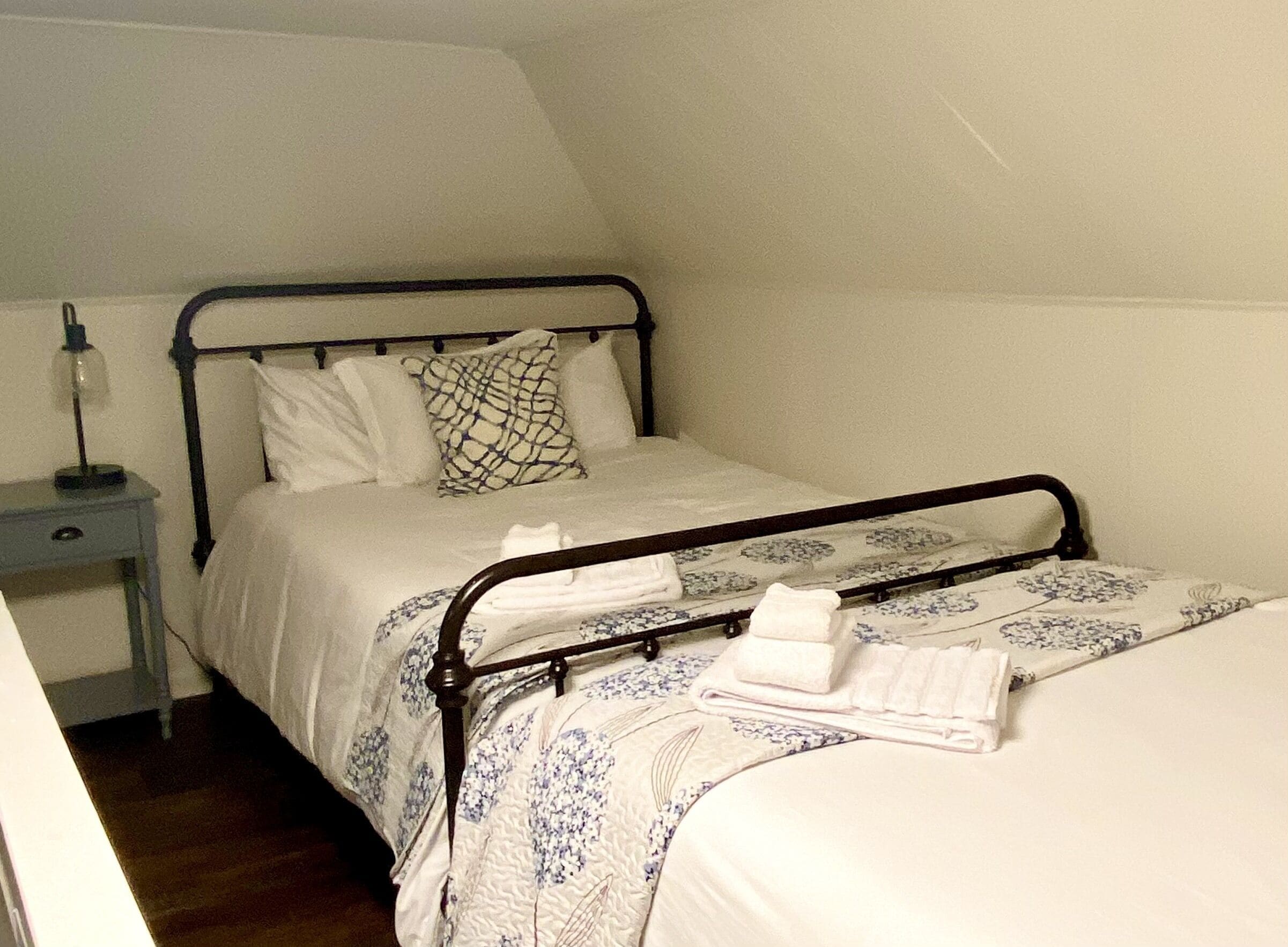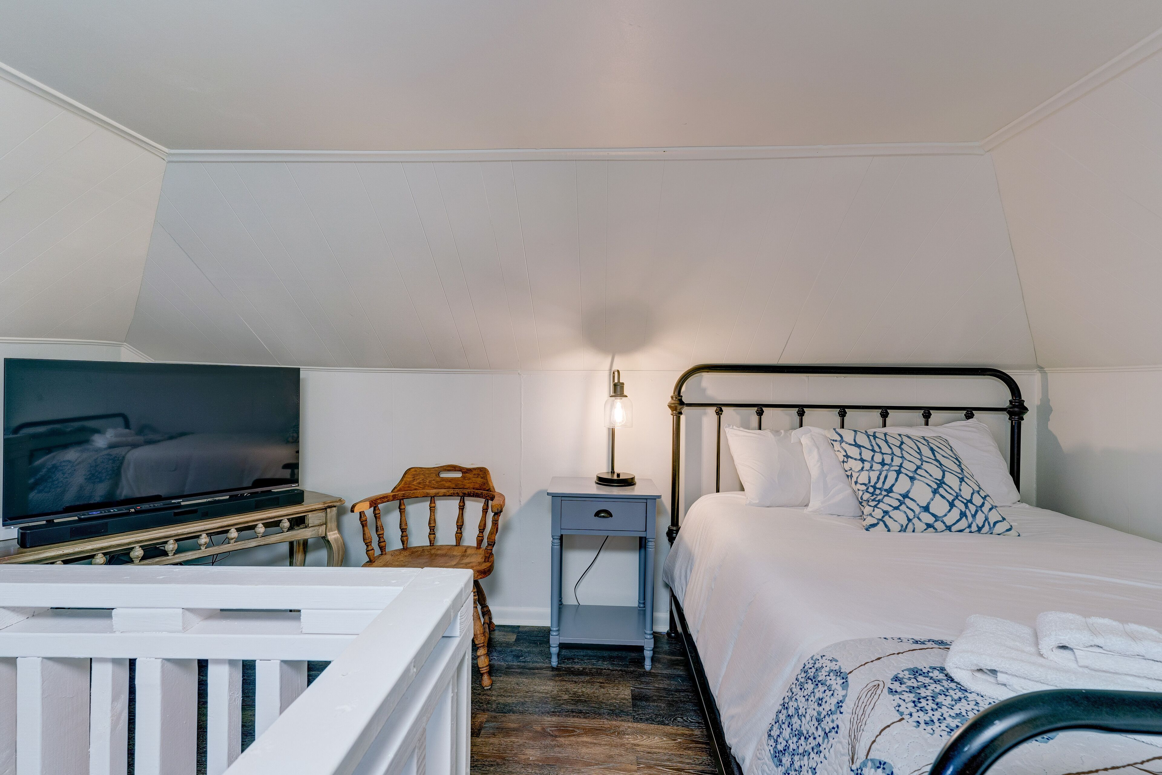 3) Attic loft bedroom: 2 Queen beds, TV and bathroom attached.