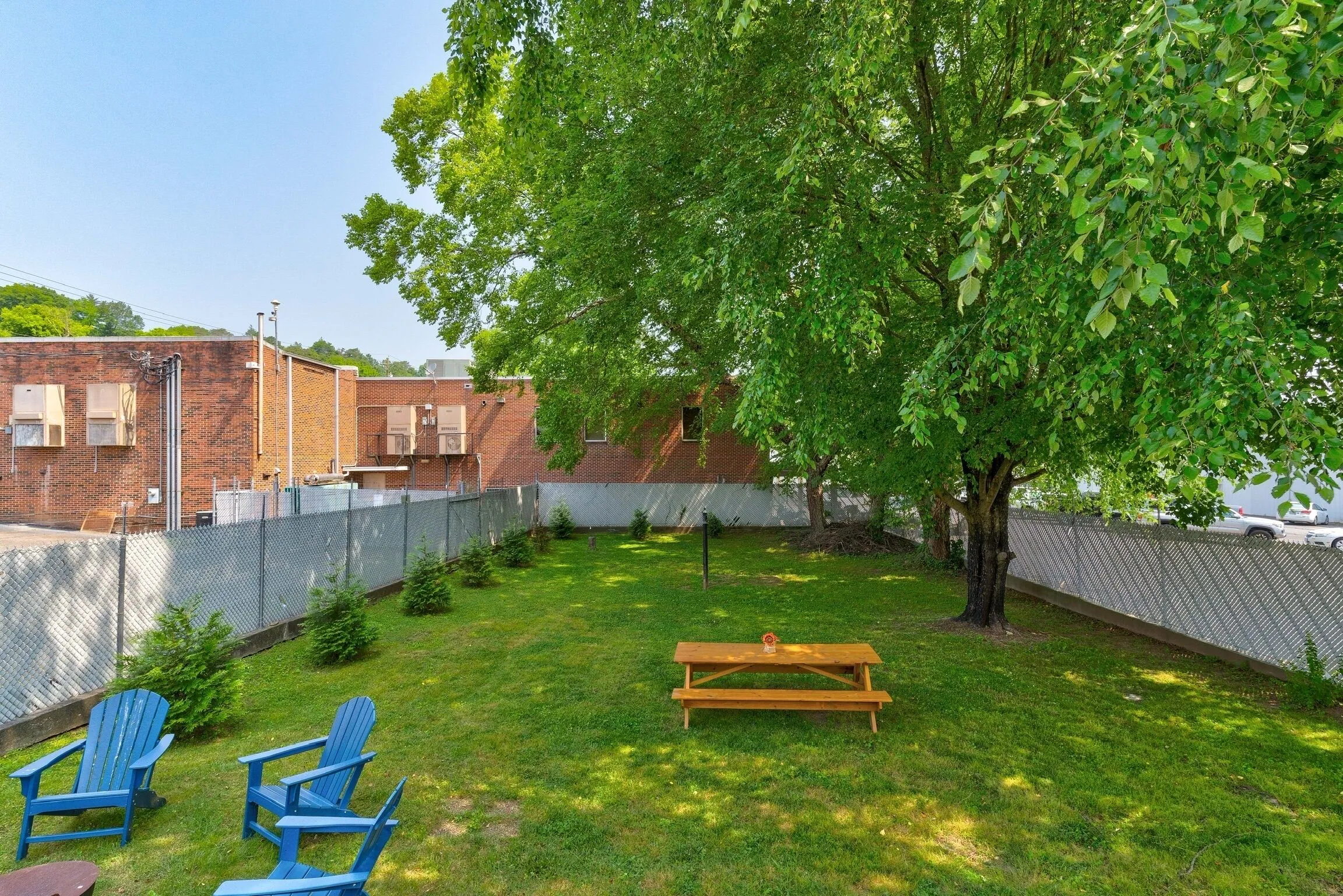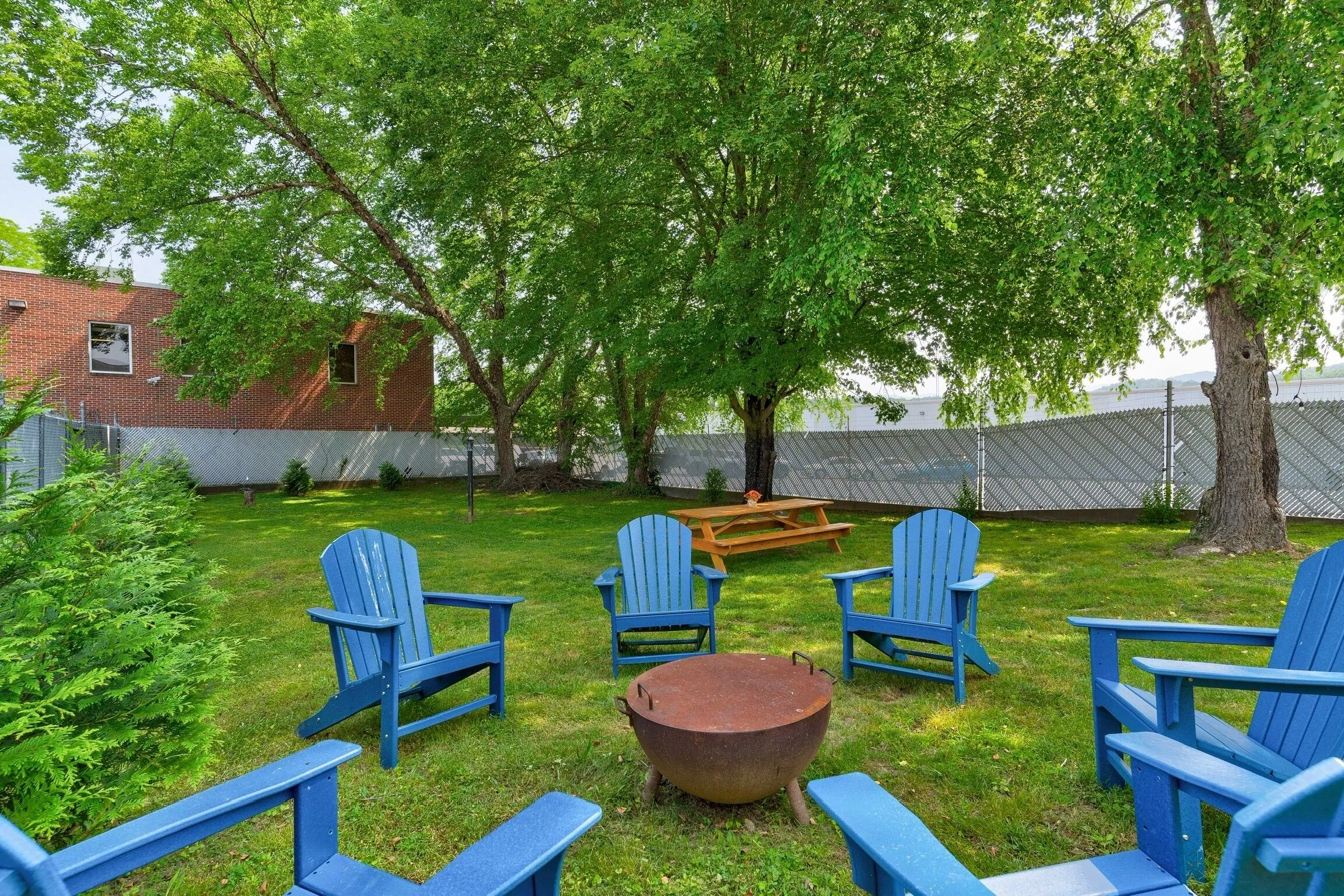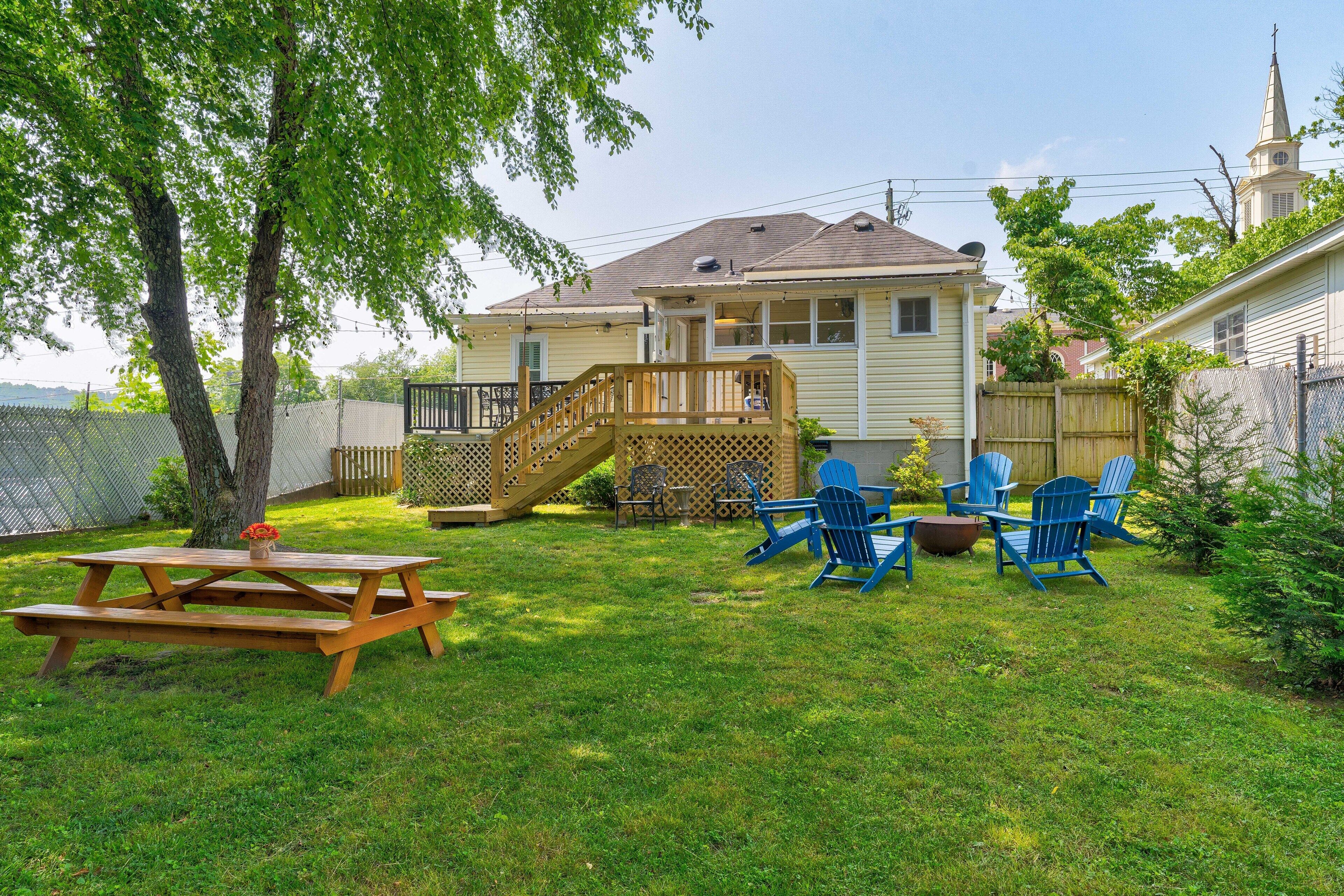 - Large fenced in backyard: Fire Pit with Adirondack chairs and picnic table.