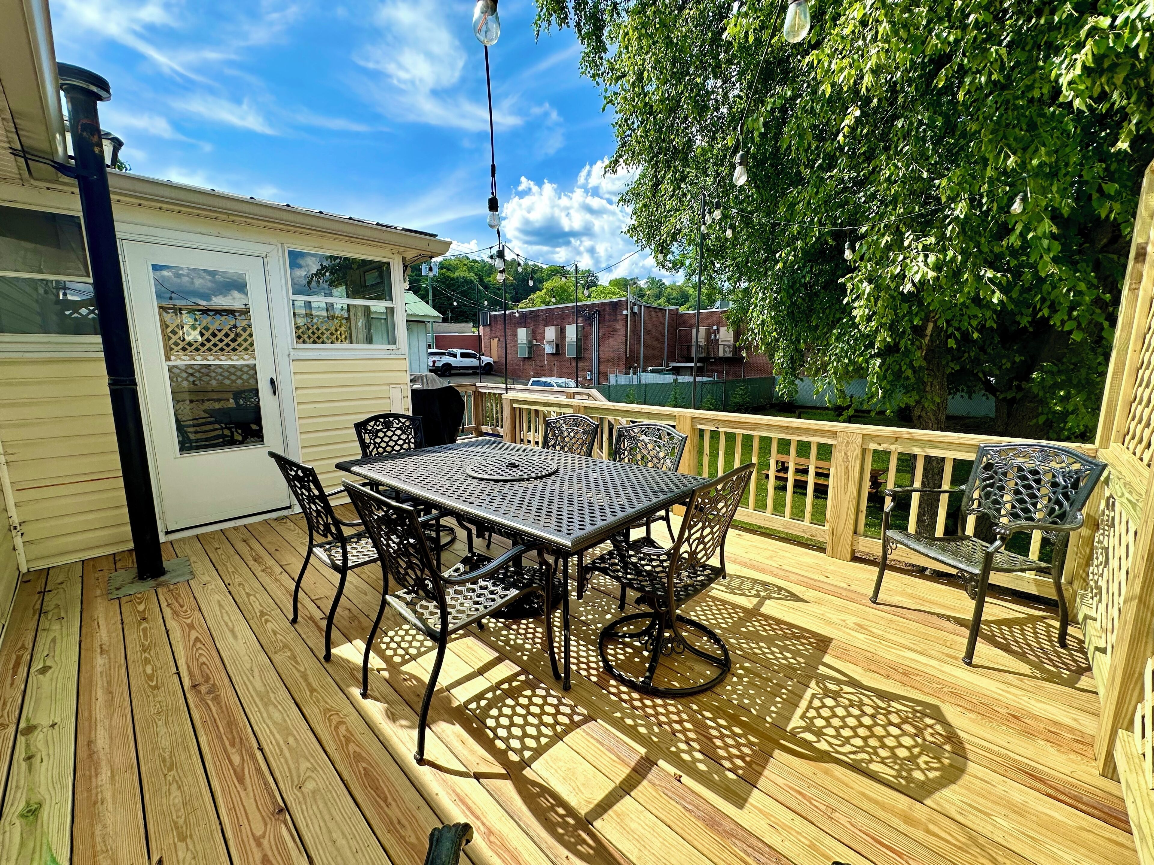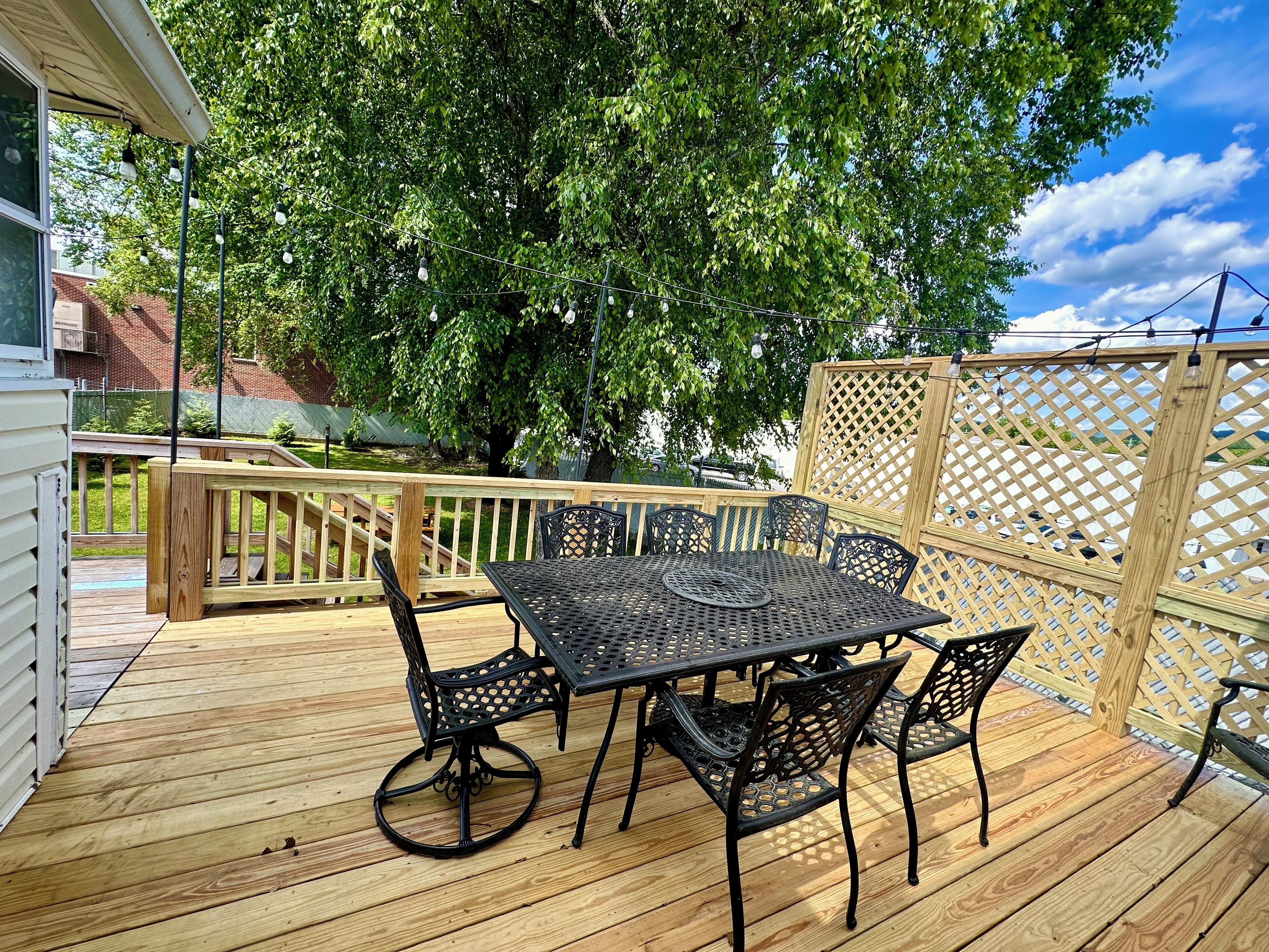 - Back wood deck: with table for 6, and propane gas grill (#1 rated Weber brand)