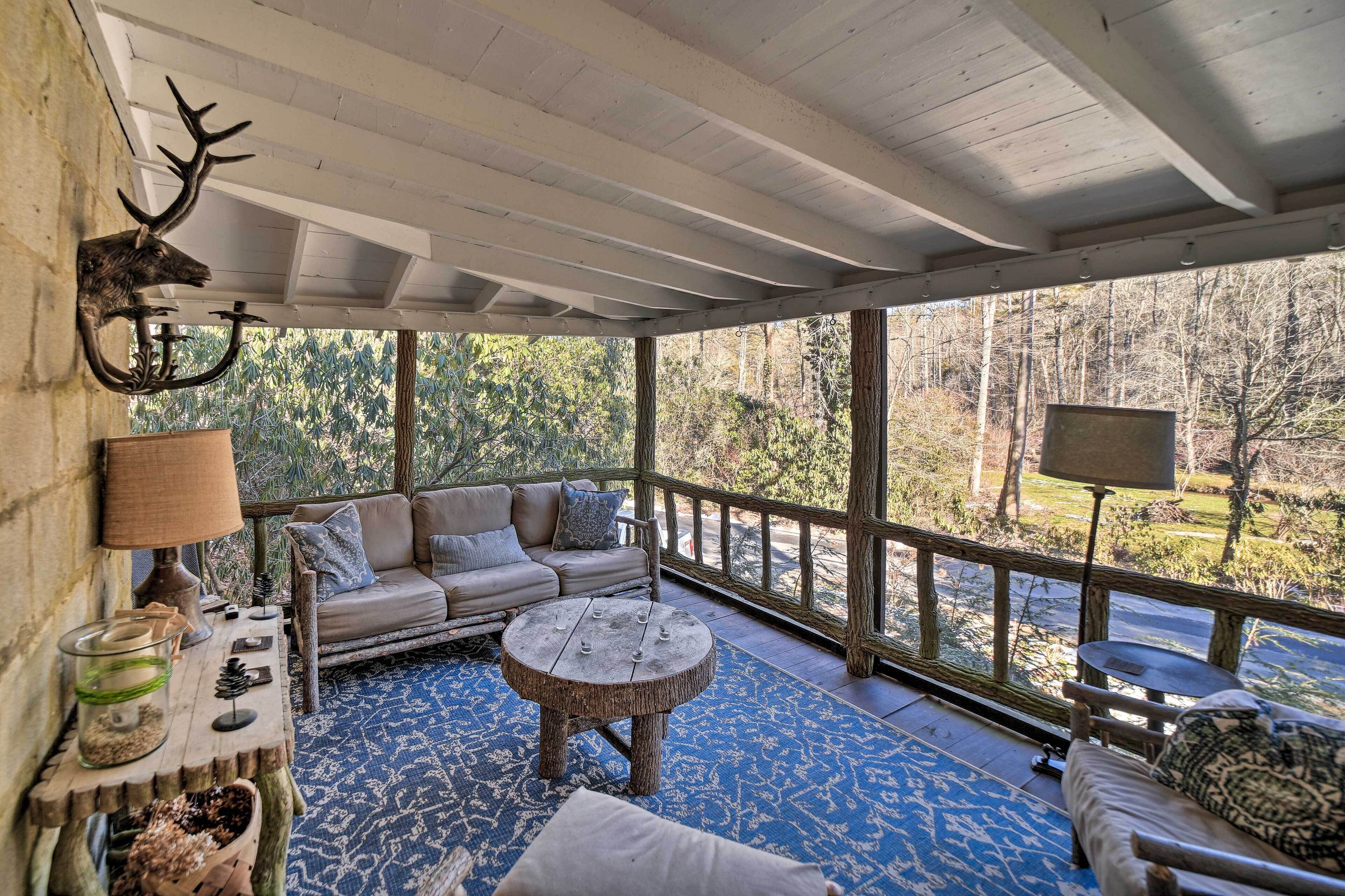 Surrounded by mountains, towering trees, and overlooking Mirror Lake, this renovated Highlands vacation rental is tucked away from the hustle and bustle of everyday life and is sure to provide an unforgettable vacation! This 2-bedroom, 2-bath cabin boasts a fully stocked kitchen, a cozy living room with a fireplace, and a screened-in porch with a dining area. Since there are a plethora of nearby hiking trails like Whiteside Mountain, be sure to pack your hiking boots.