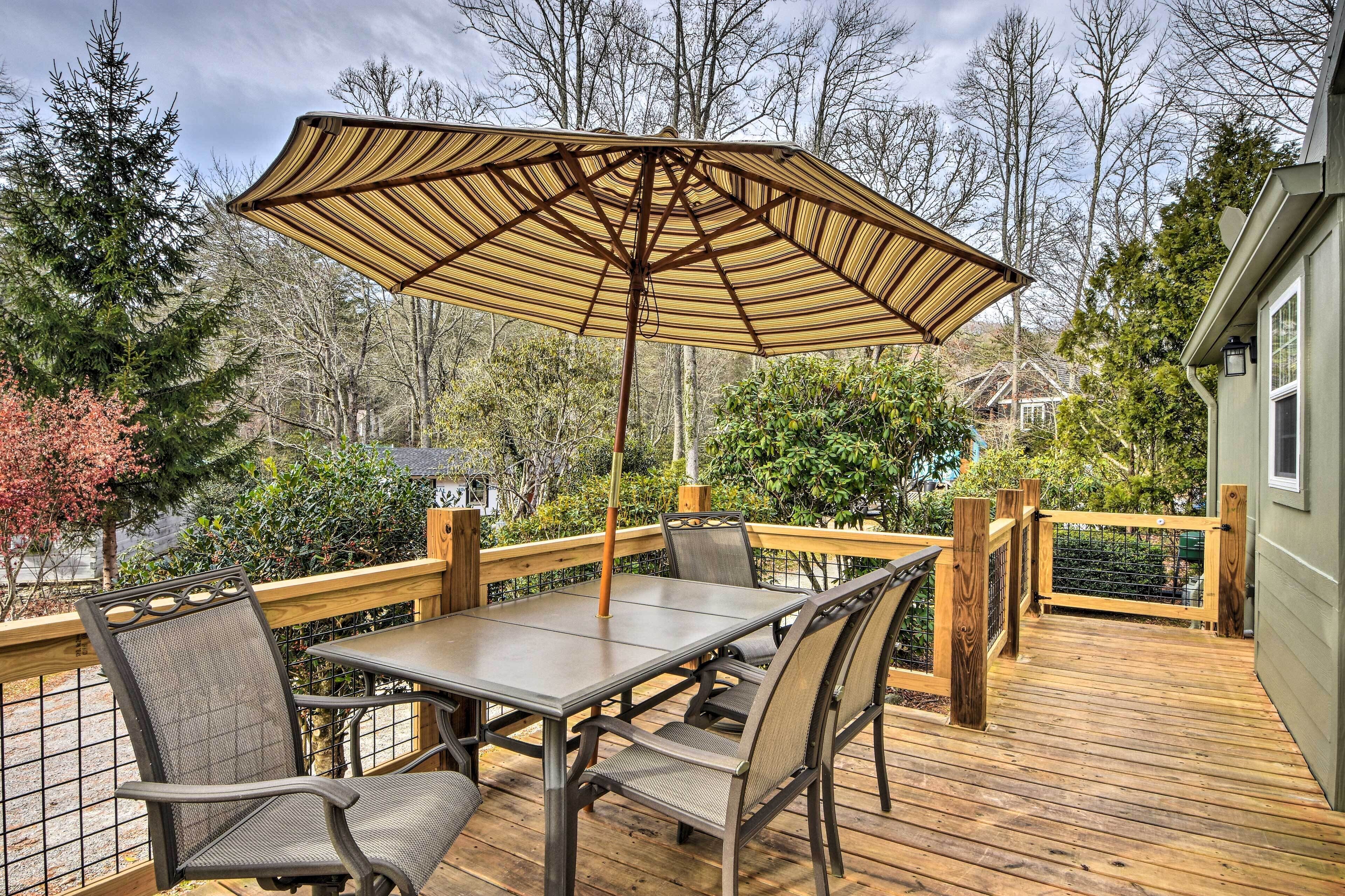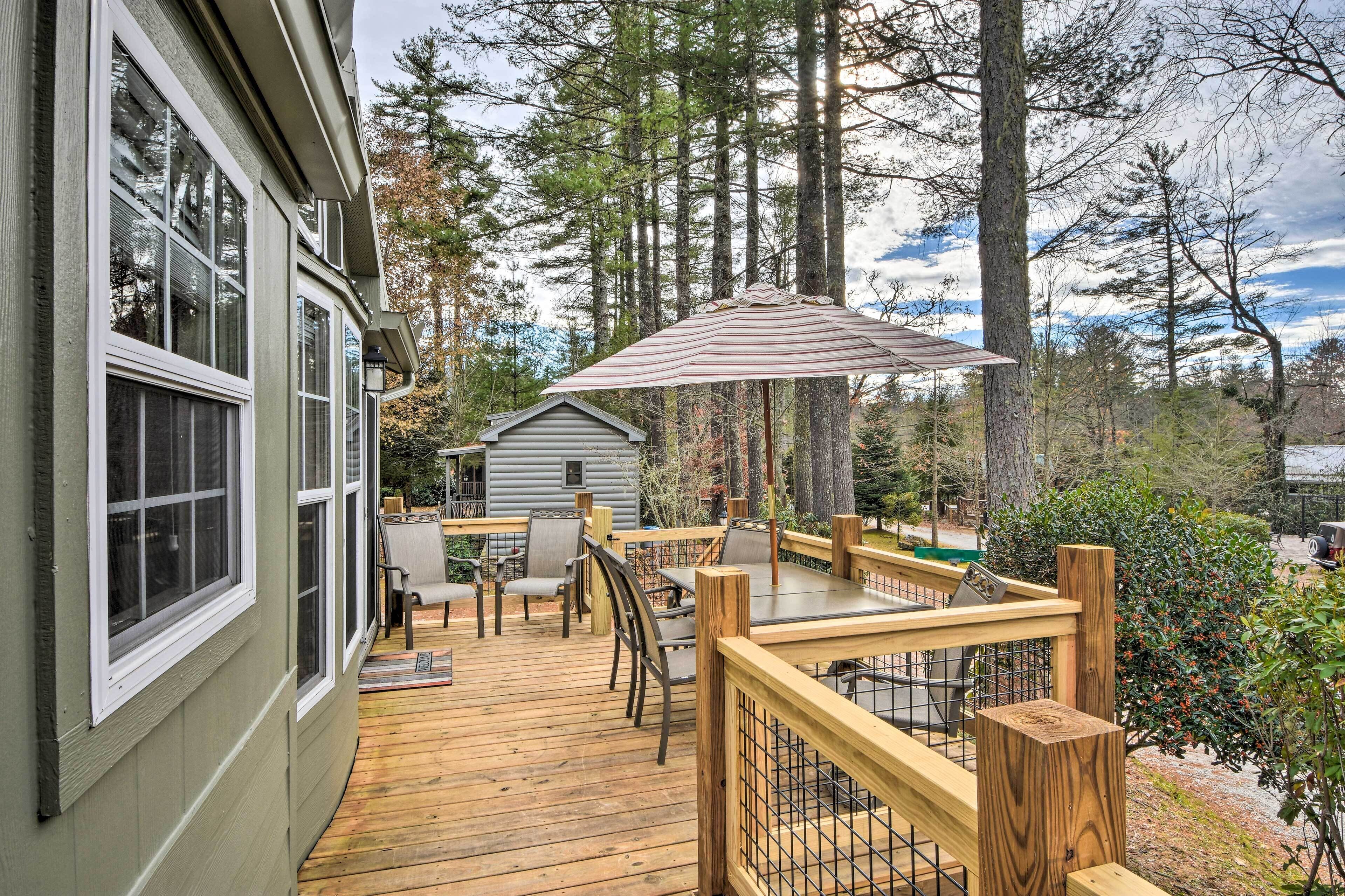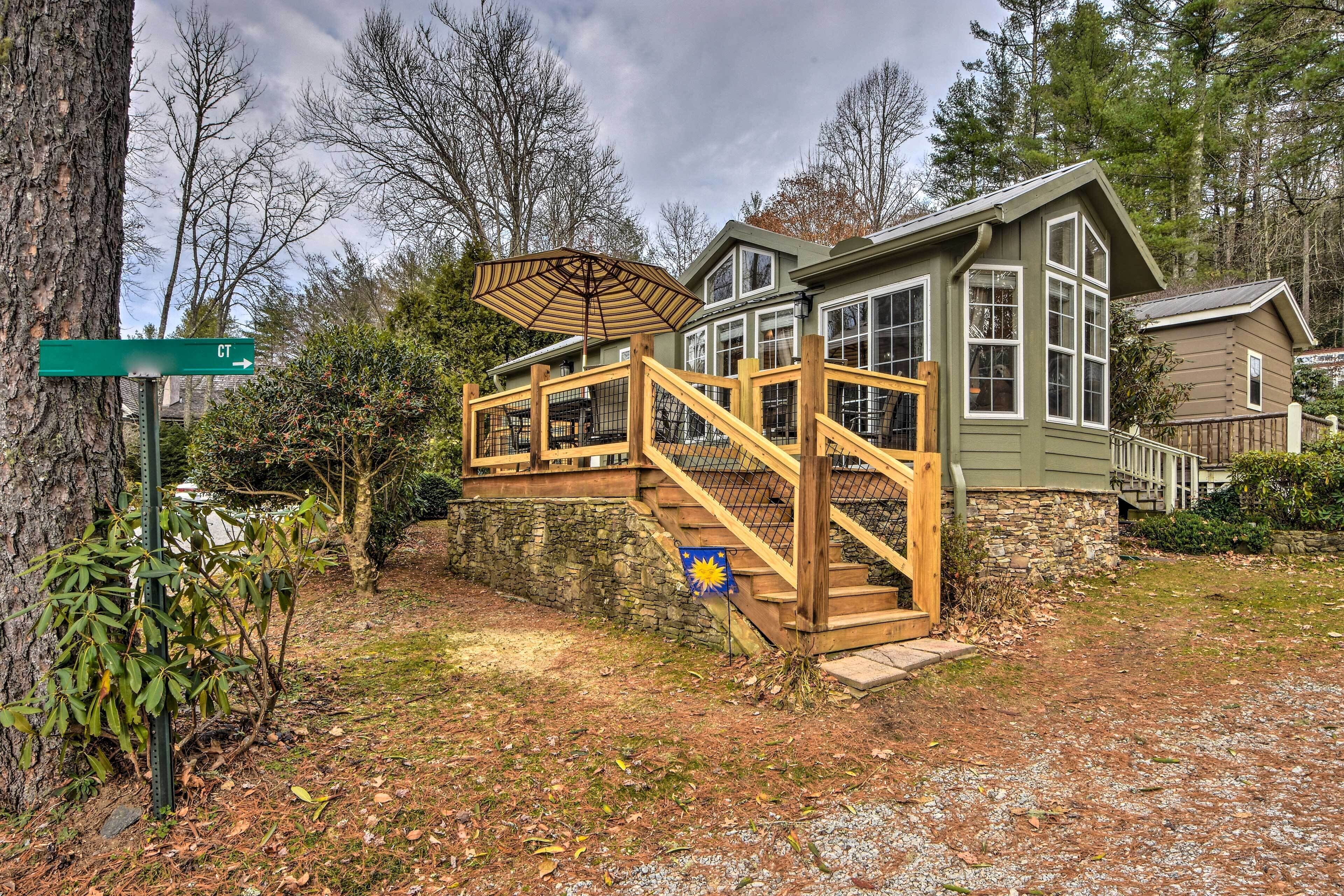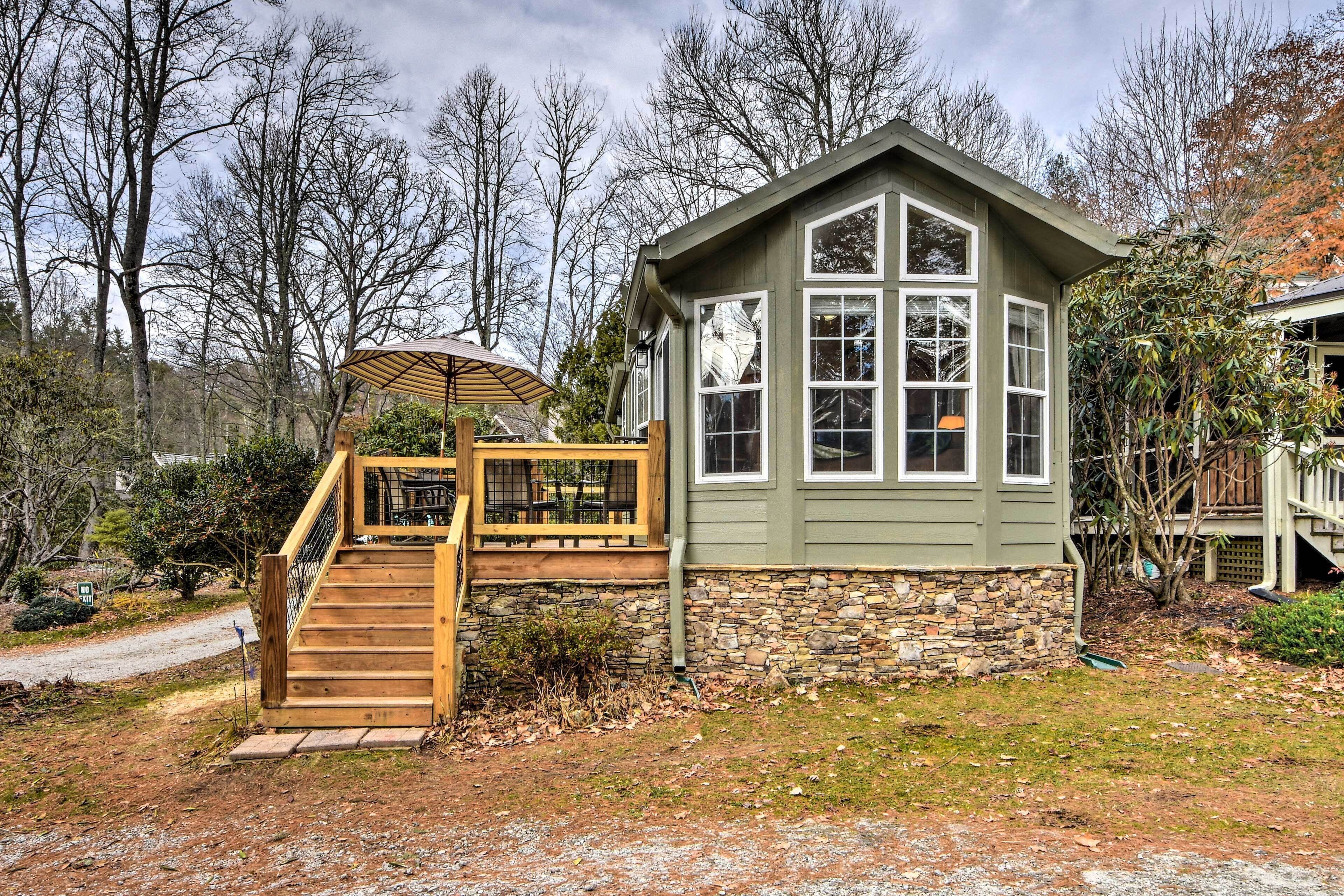 Welcome to 'The Cub’s Den' in Chestnut Cottages, a tiny home community within walking distance of Highlands. Inside, this 1-bed, 1-bath cottage the bay windows let plenty of light and life into the space. Outside, the large deck with an umbrella is the perfect space to take in the cool mountain air during an al fresco dinner. Enjoy the great shopping and fine dining in Highlands, drive to beautiful hiking trails and waterfalls, or explore the quaint mountain village of Cashiers 10 miles away.