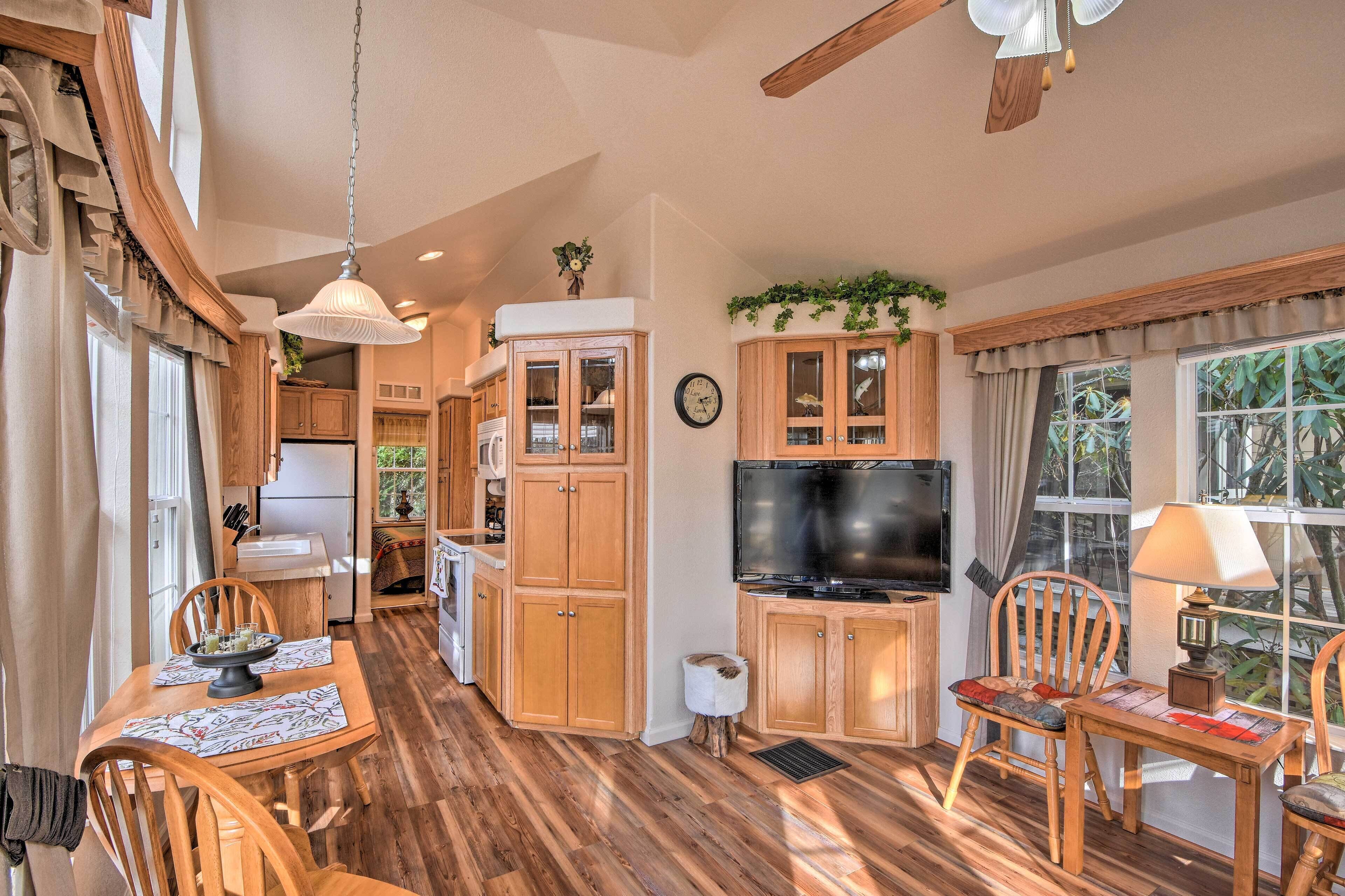 It was so cute and had everything we needed. Location was great, very close to town.