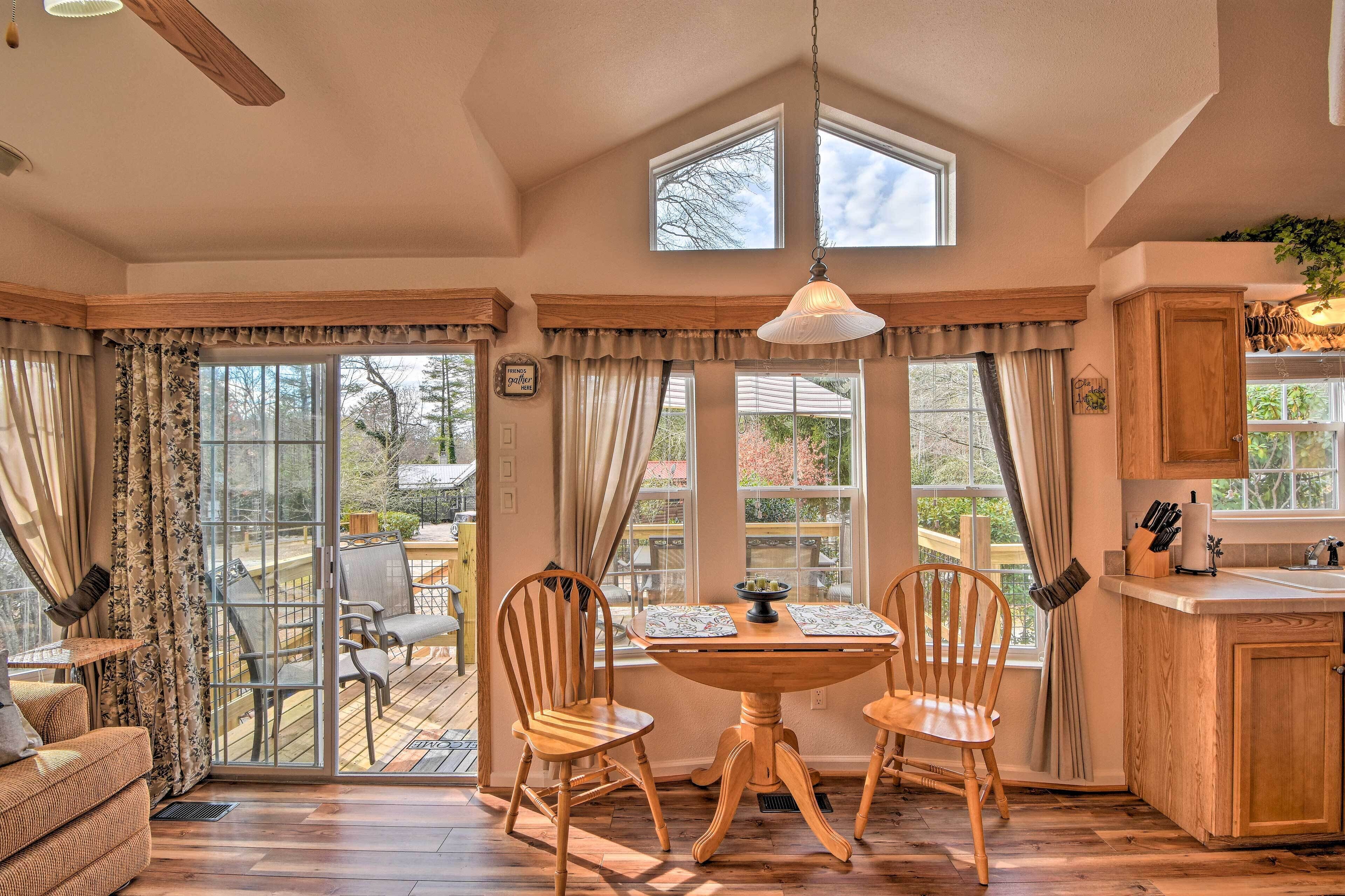 The cottage was close to main street, clean and had everything we needed for a quick get away. We enjoyed sitting on the porch and drinking our beverages of choice. The Highlands are a nice escape from the summer heat this time of the year.