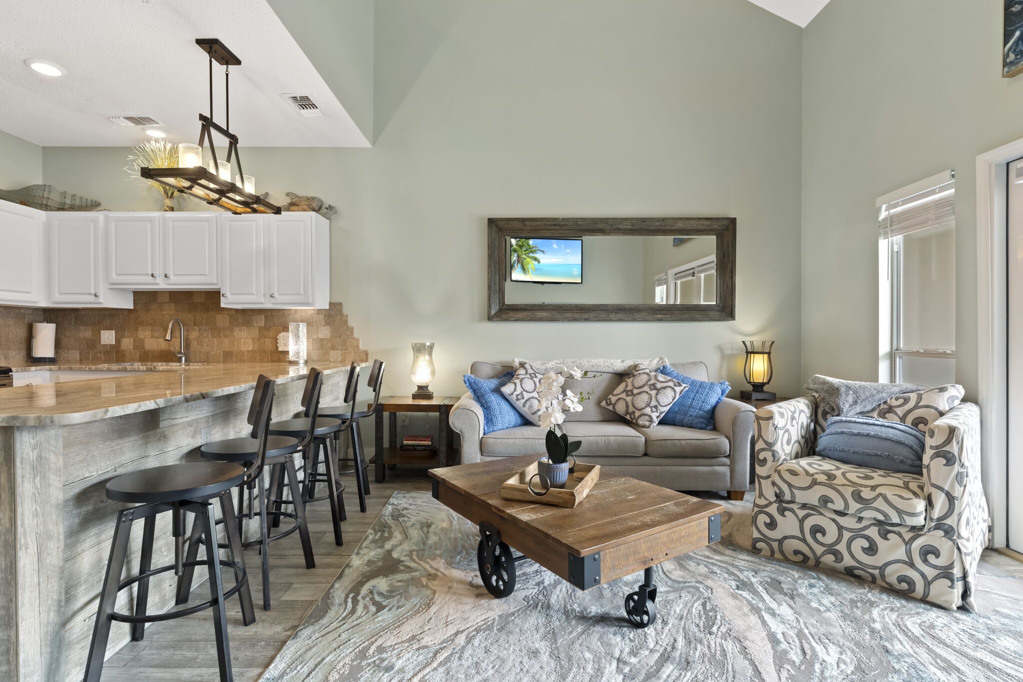 Caribbean Vibes Great location!!! Small hiccup during check-in, but that was the least of our worries. Once inside the home was nice and clean and just as the listing shows. Spacious, clean and cool! Kitchen had plenty of utensils for our cooking and grilling days. Perfect view from the balcony to the beach! Just sitting on the balcony looking at the water is BIG! Definitely enjoyed our stay here and would book here again in a heartbeat.