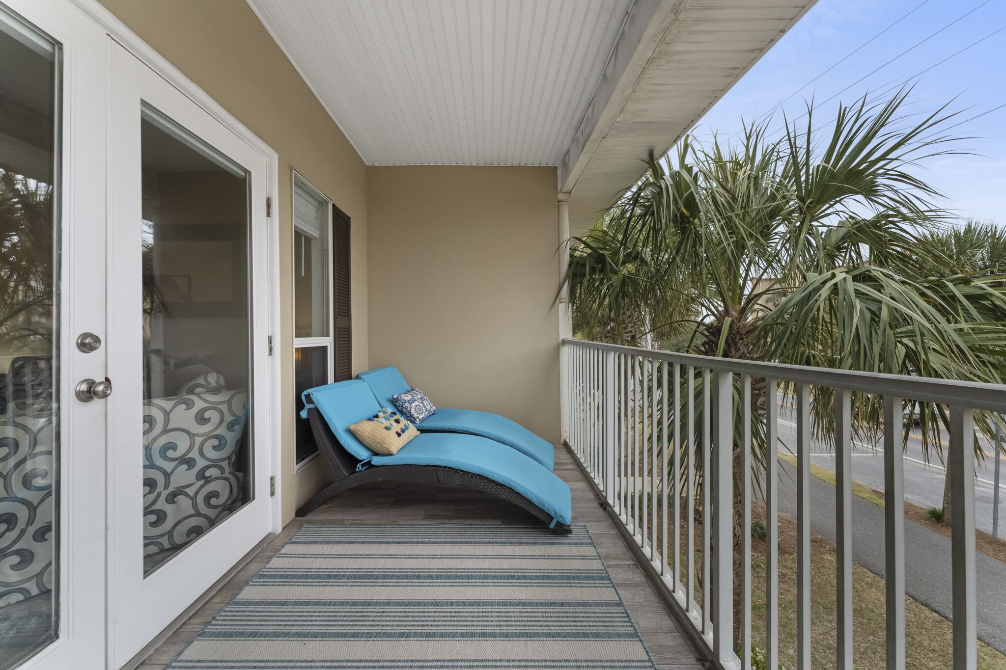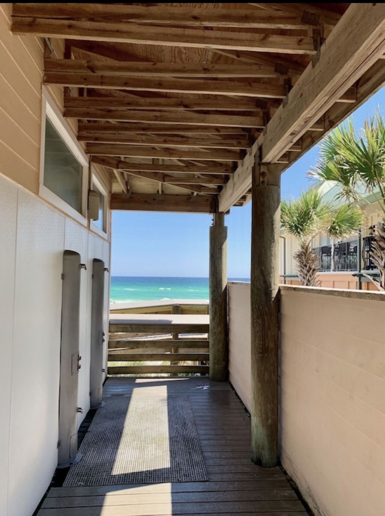 Great beach condo The condo was nicely decorated, very clean. Beds were comfy. Stocked with any extras you would need like beach toys, chairs, towels. My kids loved playing on the balcony. The location is central-close to many restaurants, shopping Publix and Whole Foods, which made it easy to eat at the condo and avoid lines. The beach is gorgeous-the only downside is that the beachfront properties rope off the majority of the beach so there’s a small crowded strip for the public.