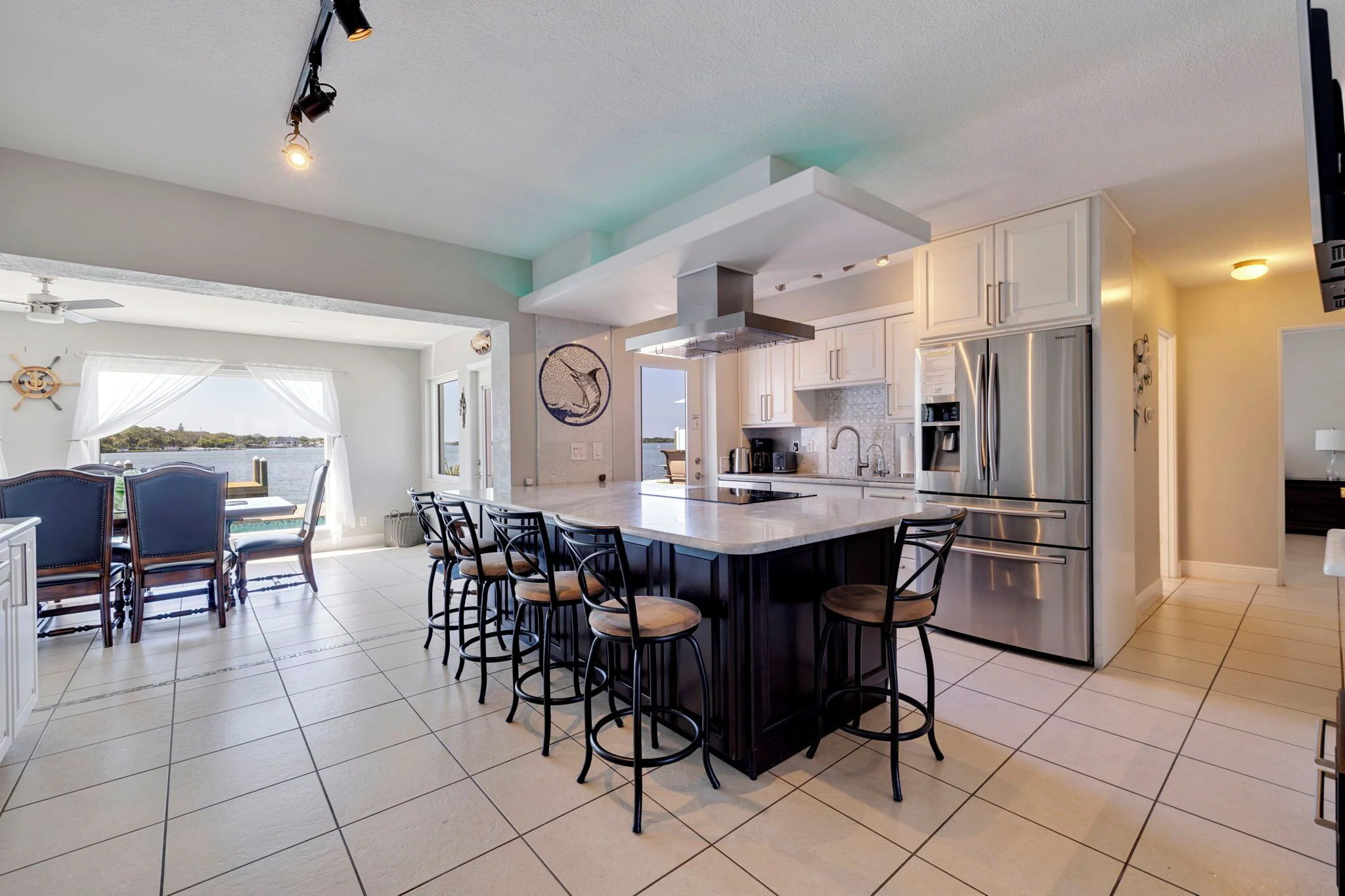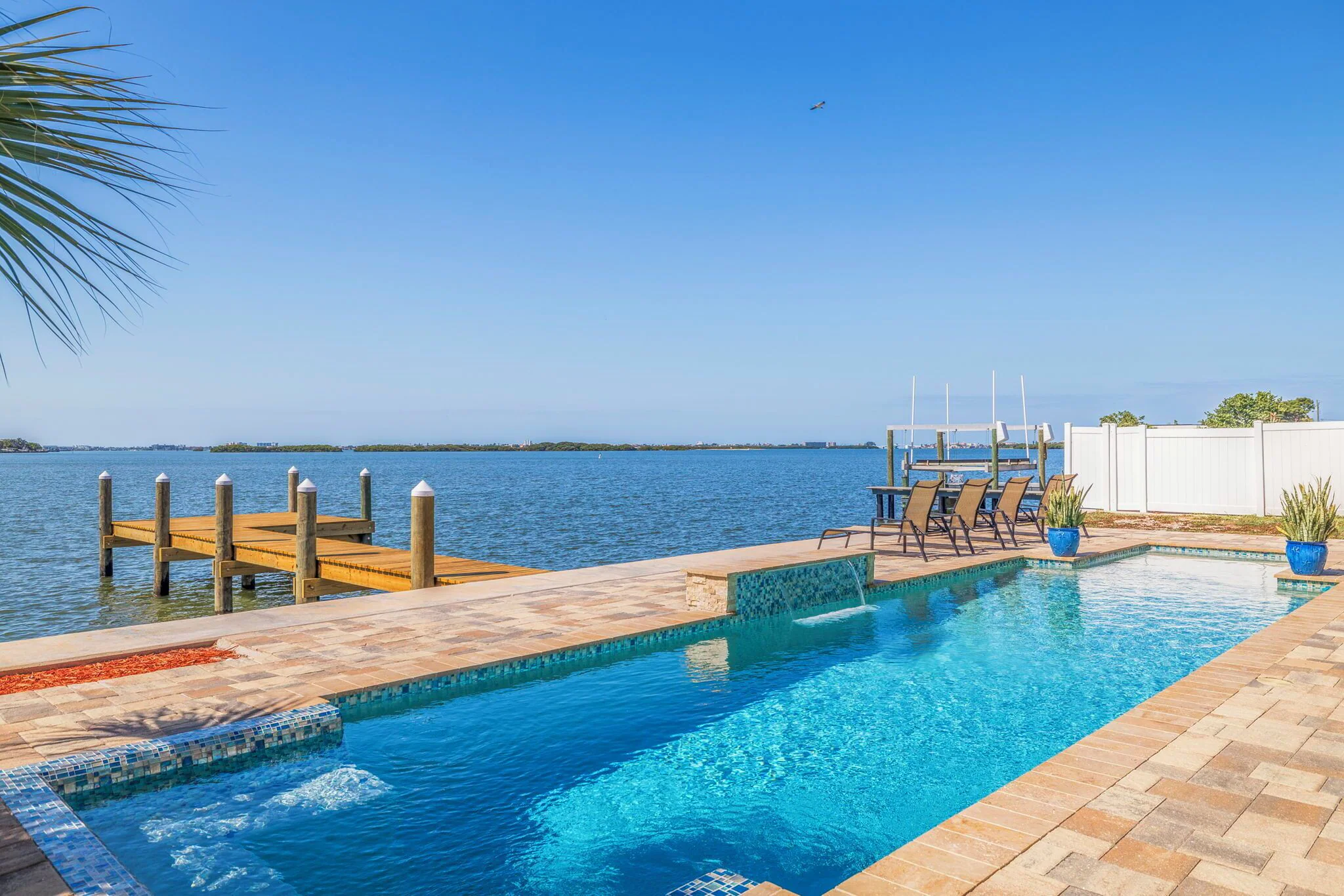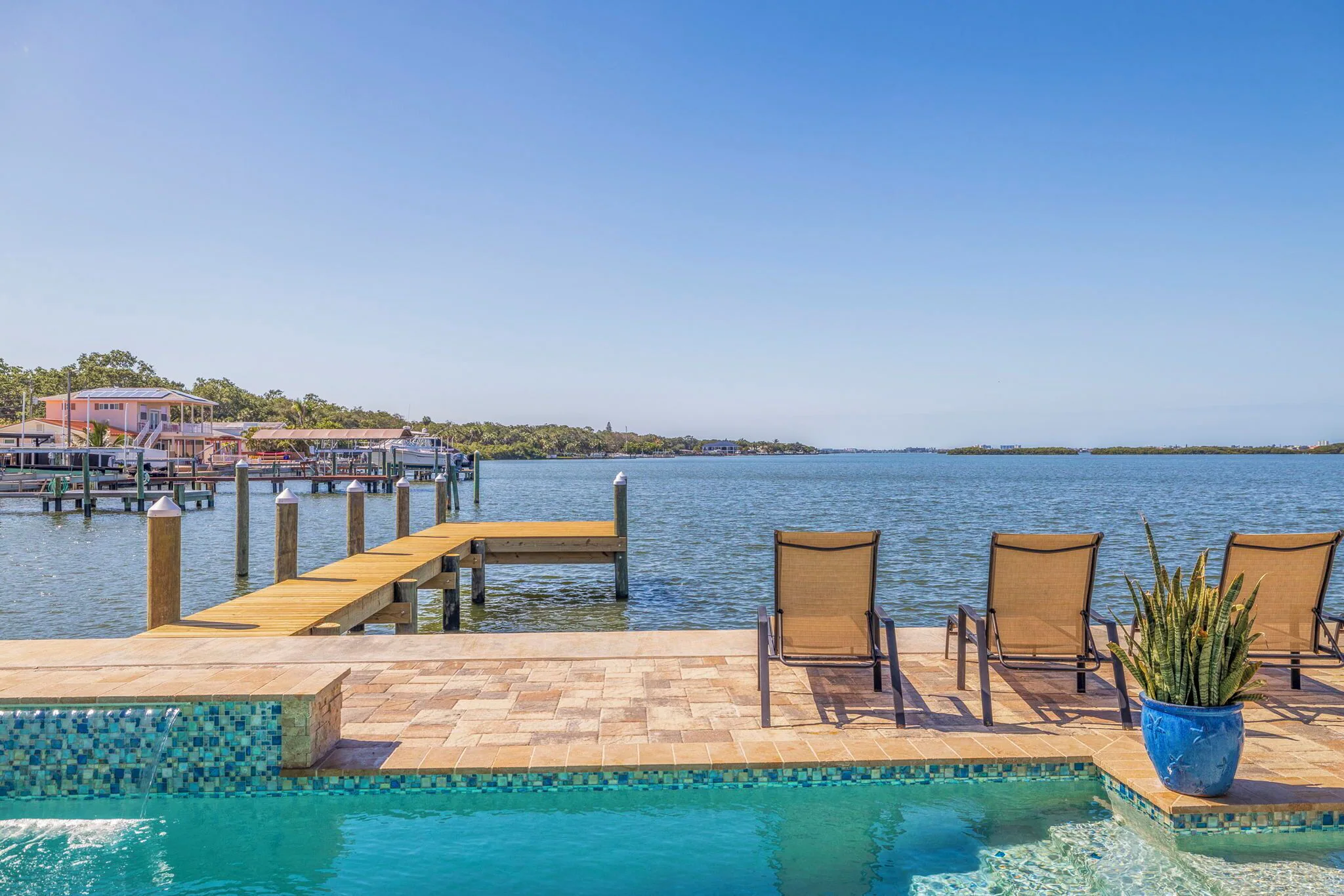 As you enter the door, you will be taken away by the expansive waterfront views of the intracoastal water ways, Dog leg Key and Bird Sanctuary Island thru brand new picture windows, a recently 45ft custom built pool with sitting bench & jets, a waterfall, water bubblers & shallow beach shelve for your lil kids to enjoy!