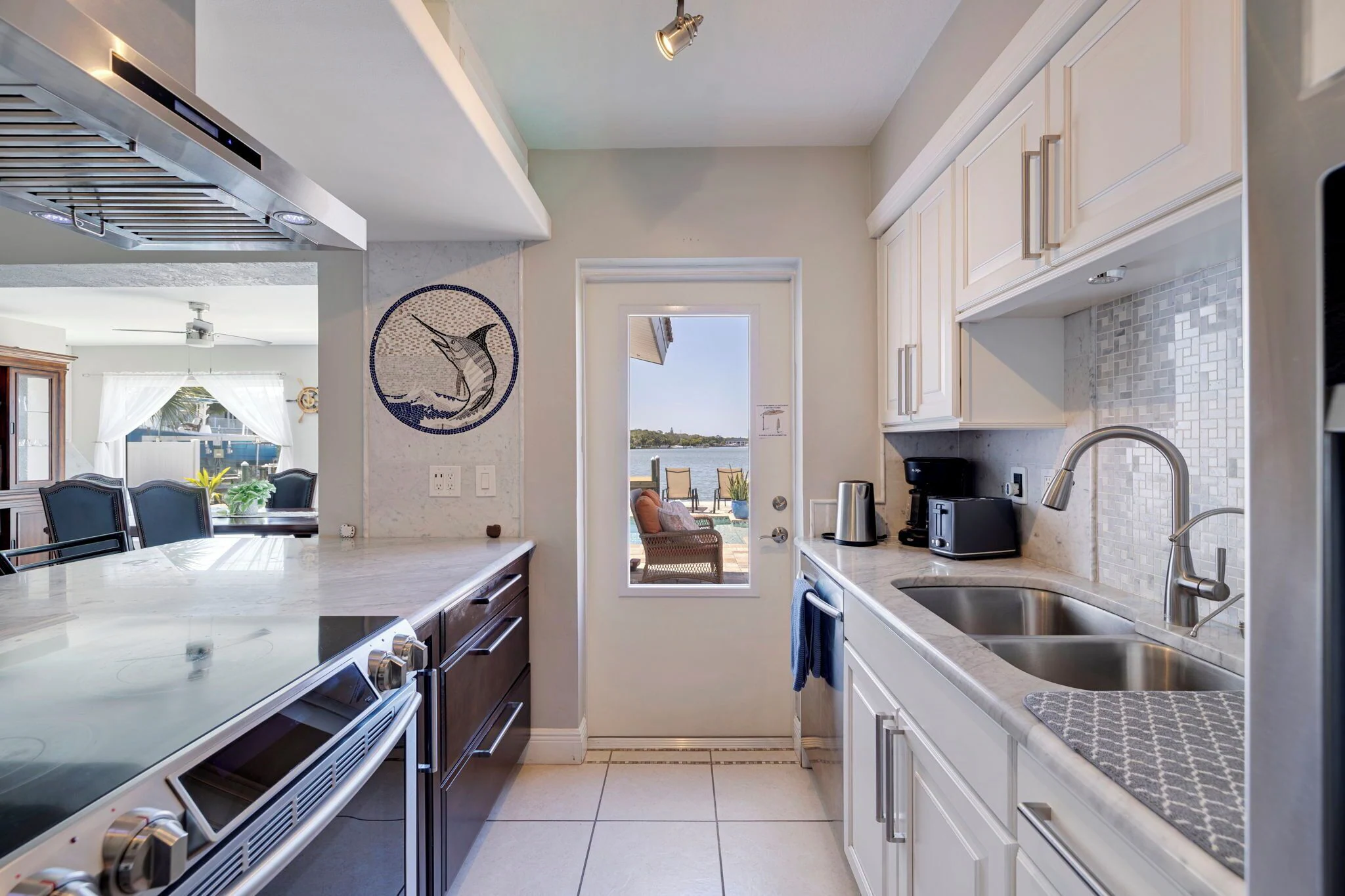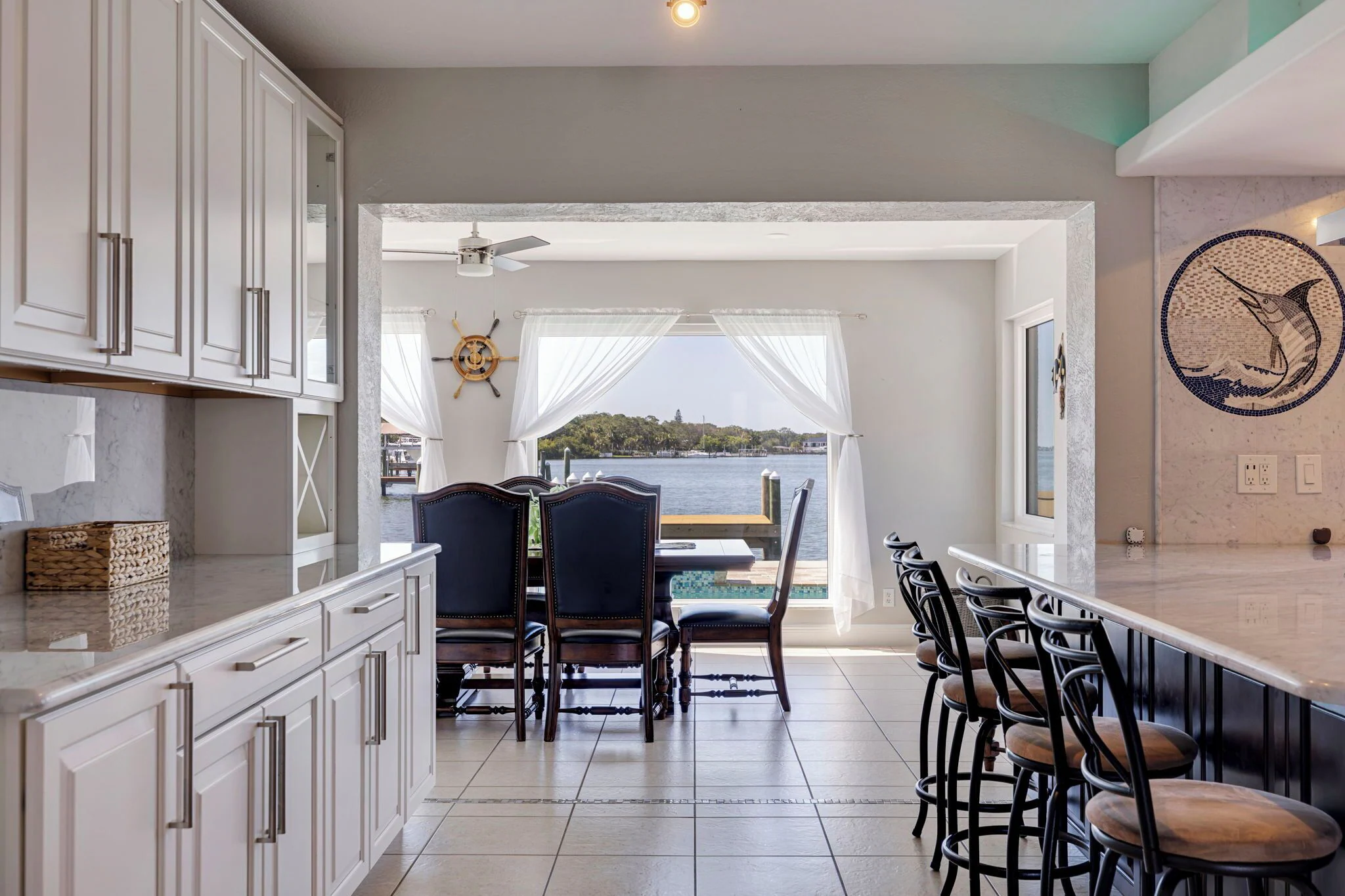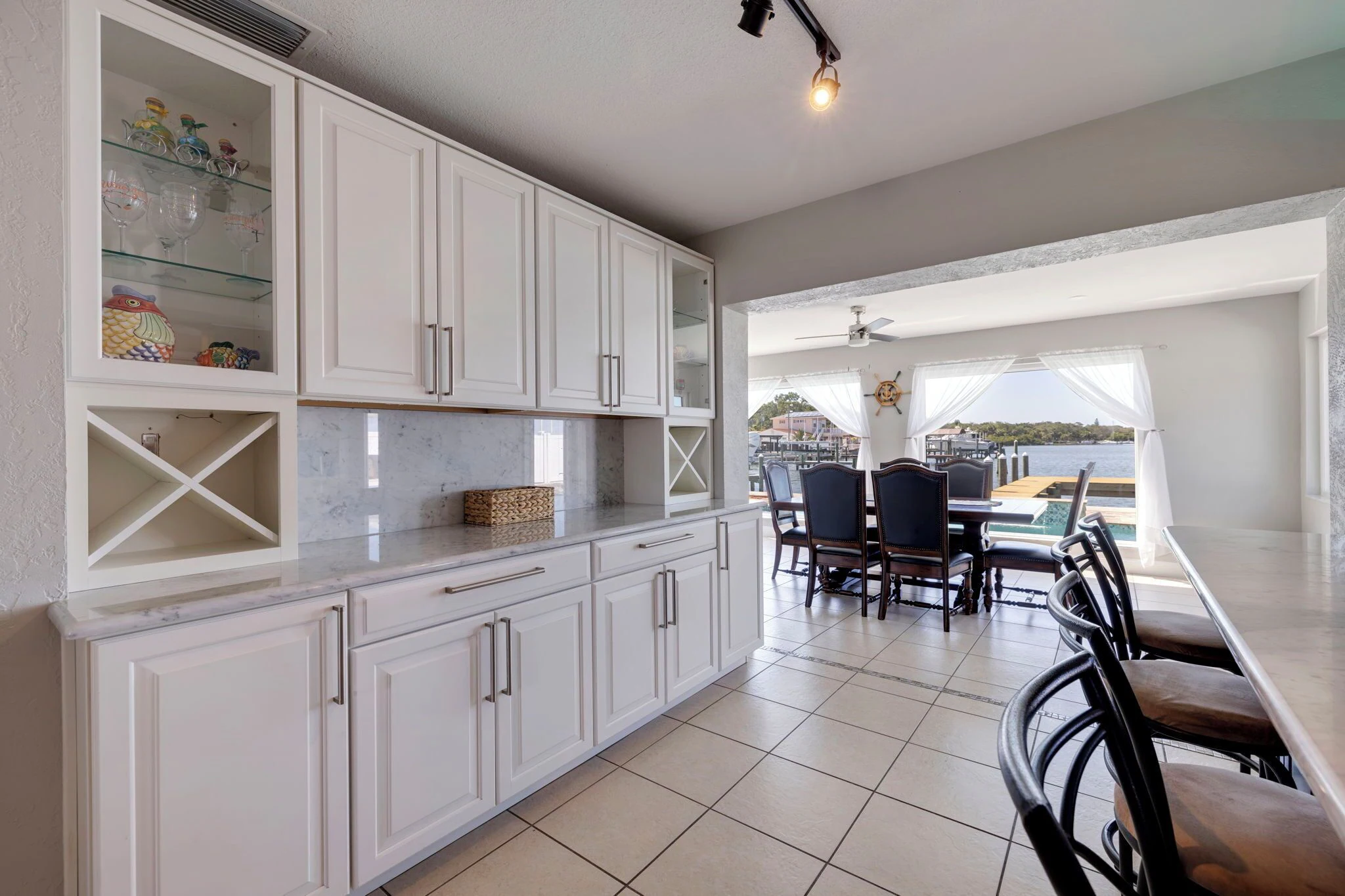 As you enter the door, you will be taken away by the expansive waterfront views of the intracoastal water ways, Dog leg Key and Bird Sanctuary Island thru brand new picture windows, a recently 45ft custom built pool with sitting bench & jets, a waterfall, water bubblers & shallow beach shelve for your lil kids to enjoy!