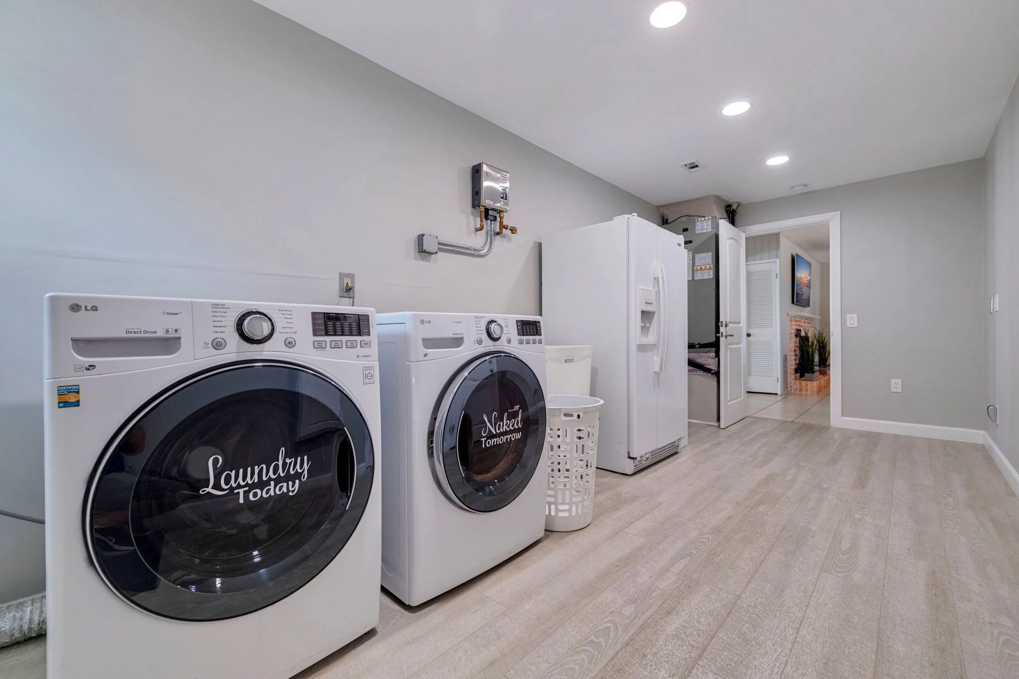 Separate air conditioned laundry room with washer and dryer, an extra refrigerator for all your extra food and drinks. Ironing board and iron is provided if you are in the mood of ironing ( who wants to iron on vacation??). But it's there for you just in case!