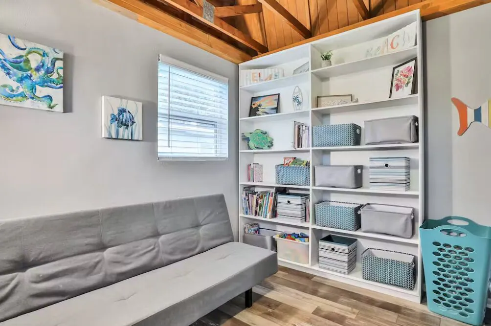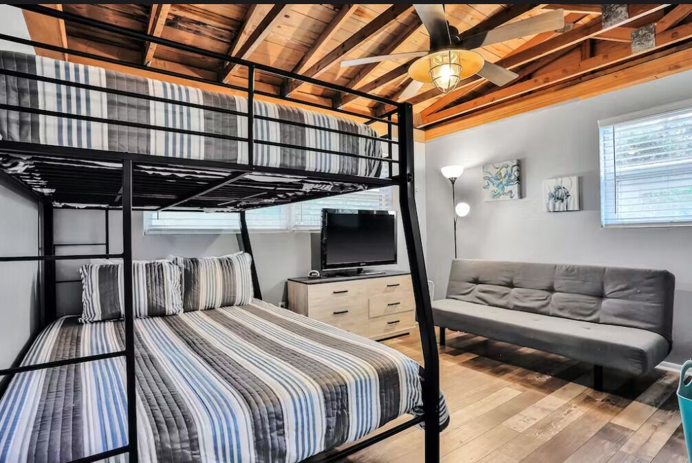 This house was everything we needed, the location to beach, good coffee, food, was all in walking distance. The sleeping accommodations were perfect for our needs, Landry and detergent supplied. The outside seating area has more than enough chairs, and loungers, and outdoor couch, even including a TV!! We will be coming back for sure.