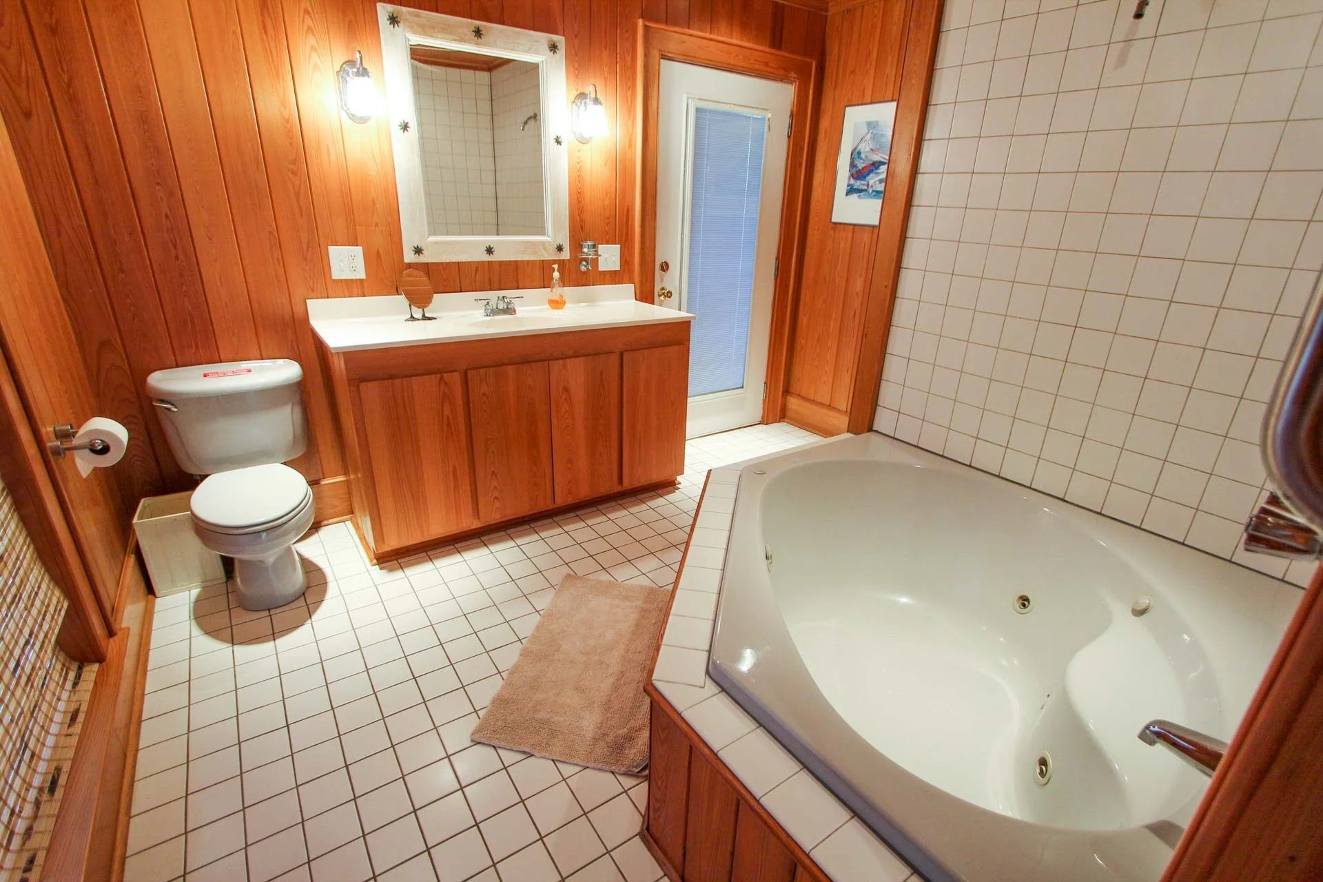 3 baths: 2 with Jacuzzi tubs/showers, 1 with regular tub/shower.