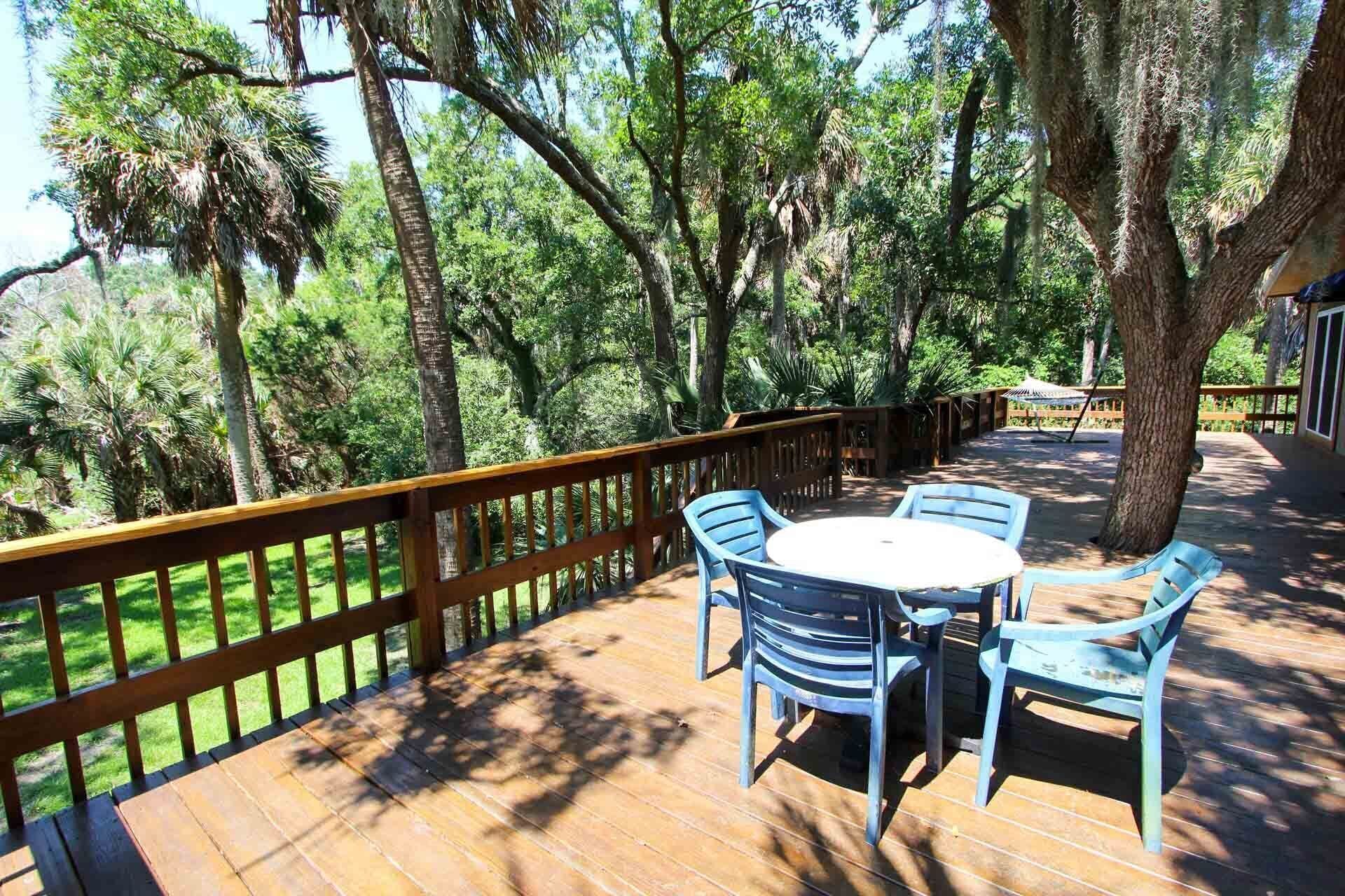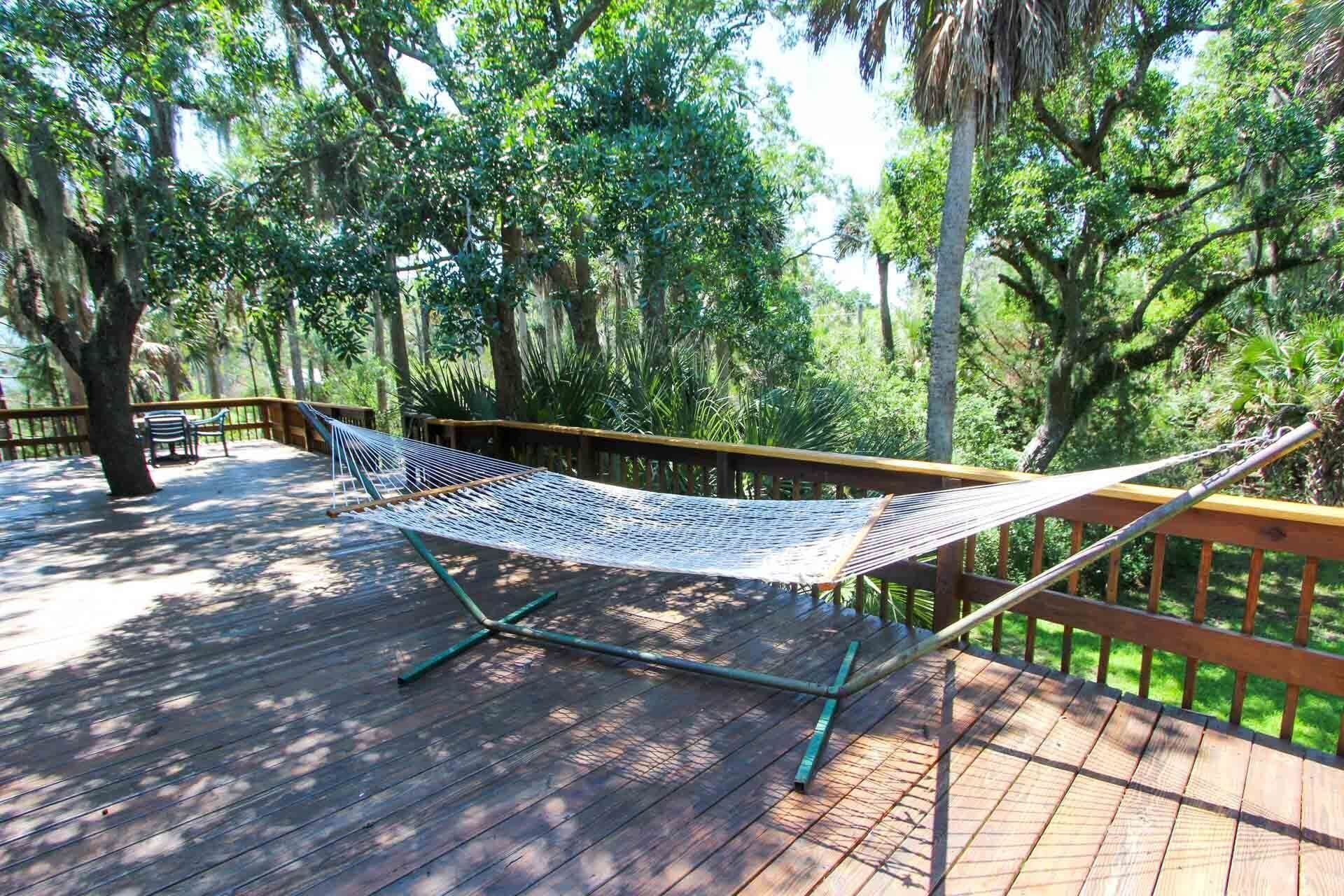 Big back deck with hammock.