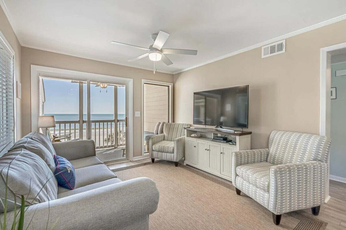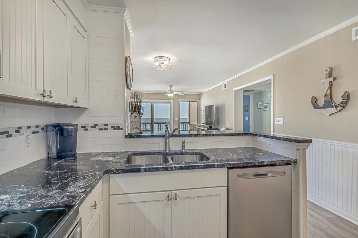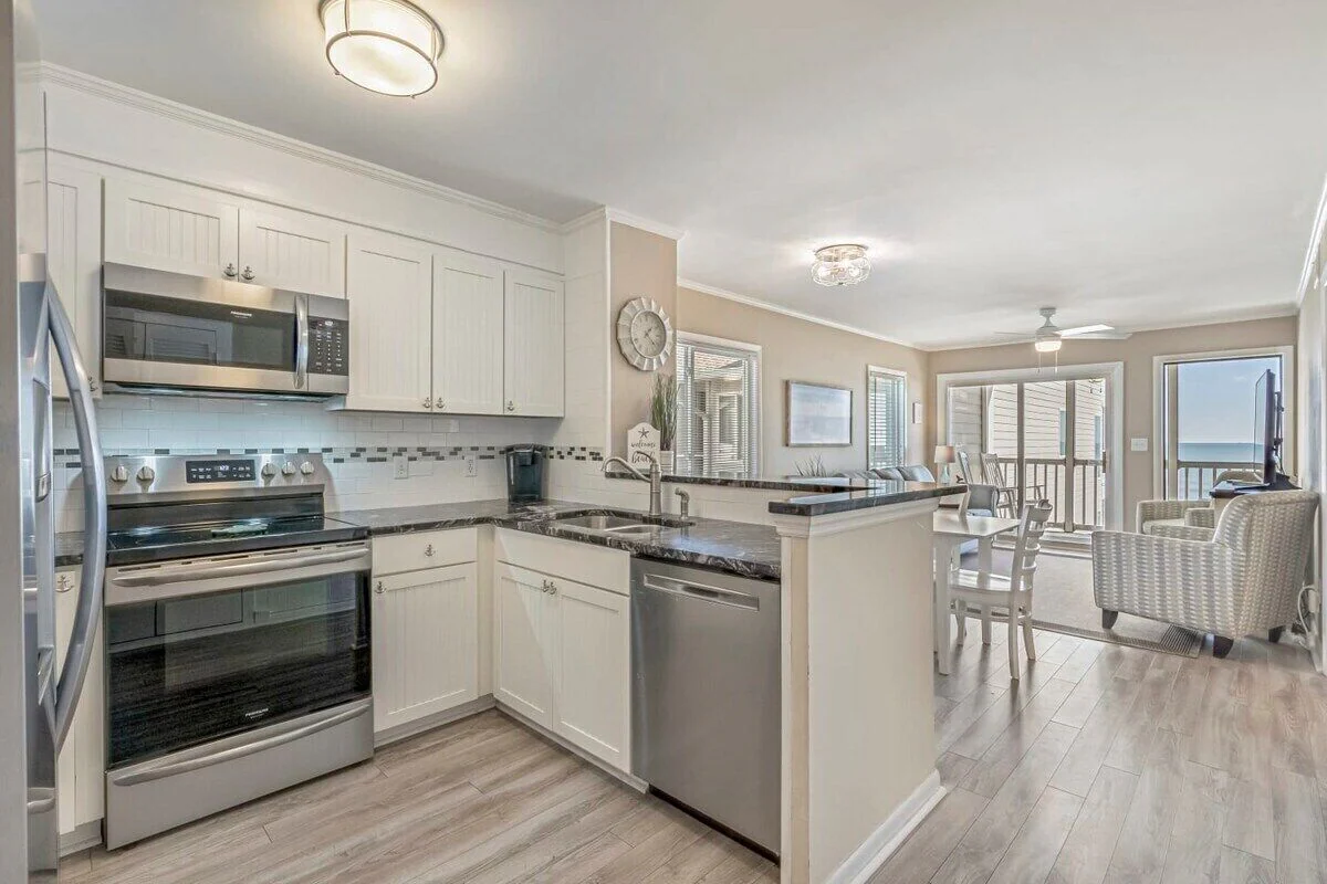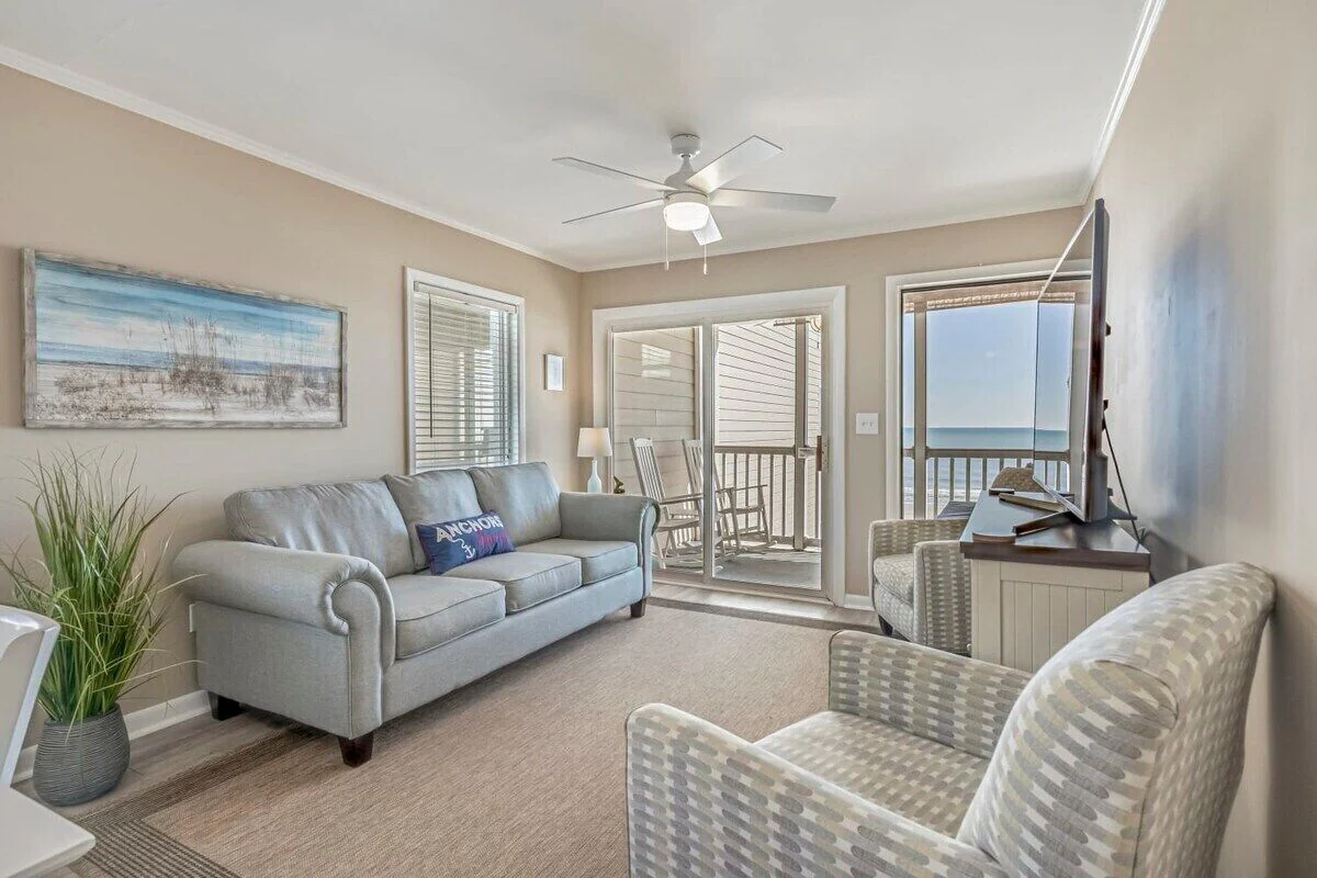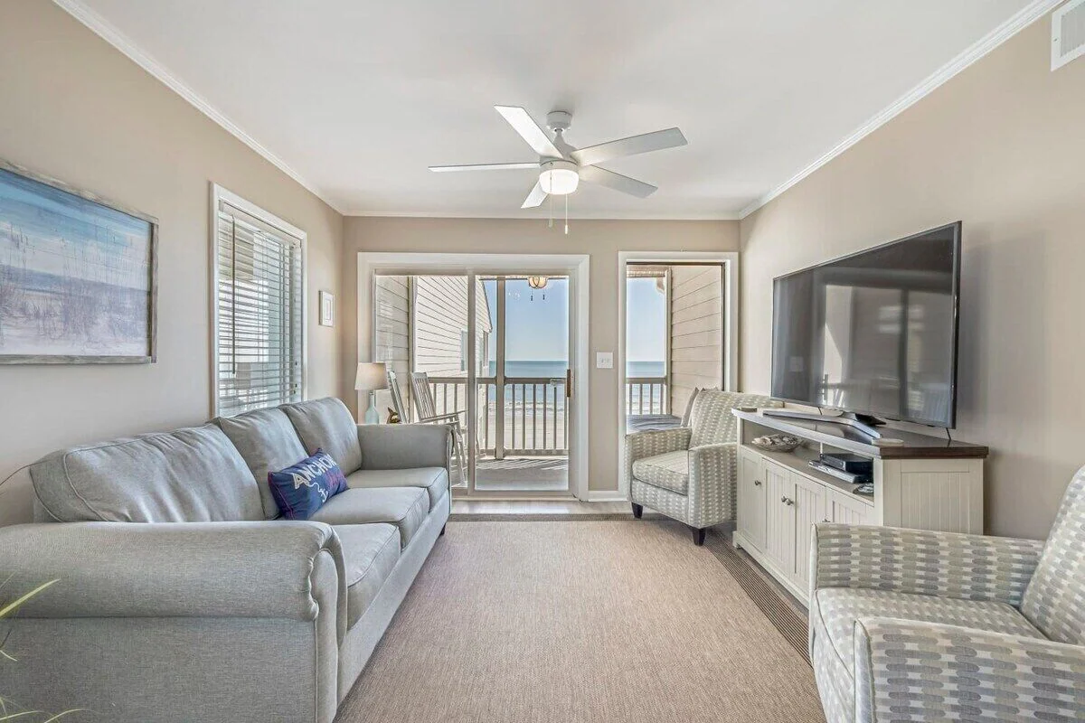 Experience the ultimate coastal lifestyle in our newly renovated 3 bedroom oceanfront condo! Enjoy views of the beach and palm trees from your family room while relaxing on the new furniture. The open concept living area is complete with a fully equipped kitchen and modern furnishings. Located on Shore Drive within walking distance to restaurants and bars, plus a perfect central location to drive to all the attractions that Myrtle Beach has to offer!