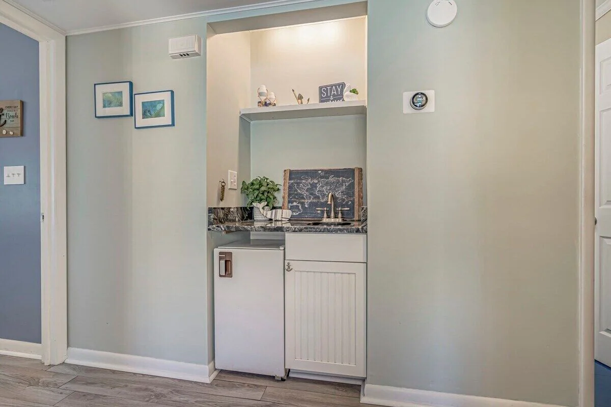 Kitchen: Newly updated floors/appliances/cabinets! Includes cups, plates, utensils, pots and pans. Keurig machine along with a starter kit of Keurig cups included!