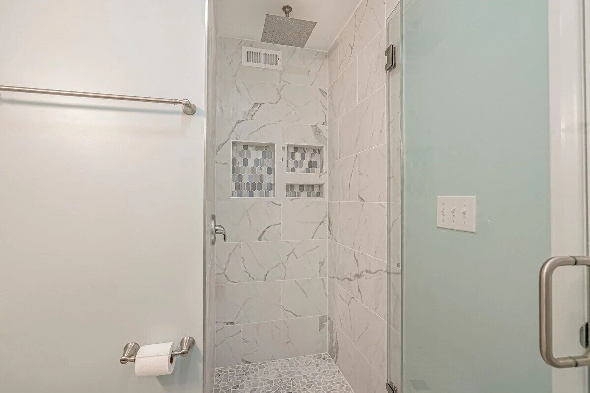 Full Bathroom 1: Newly updated December 2022! Beautifully tiled shower and floors with rainfall shower head. Attached to bedroom 1.