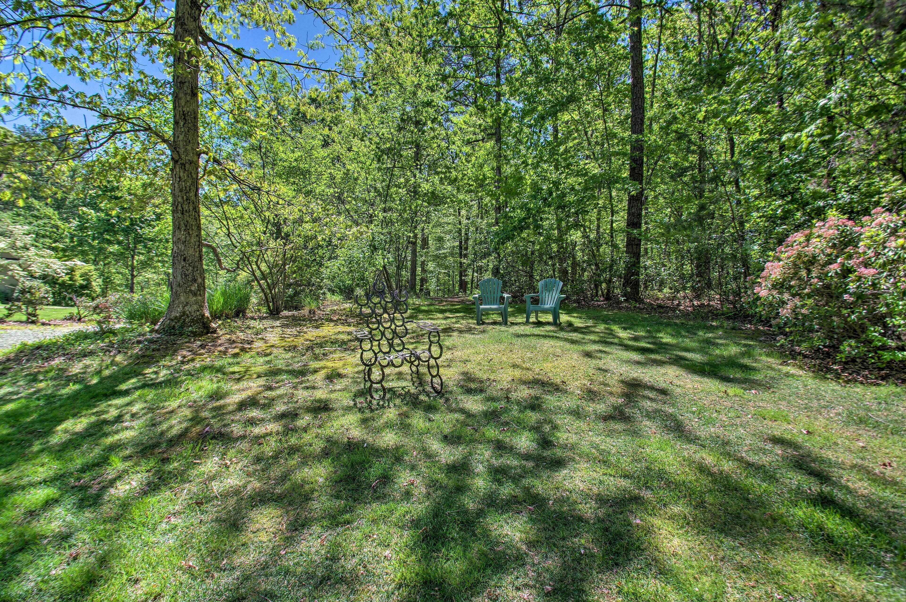 Deck w/ Seating | Walk to Wineries | A Few Disc Golf Holes On-Site | 20 Acres | Owner On-Site (Separate Unit w/ Shard Yard)